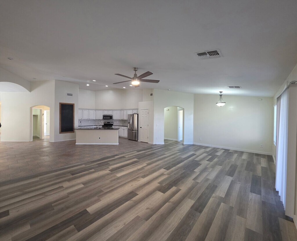 Free March Rent! Now available for $2,195/month, this spacious 4-bedroom, 2-bath single-level home at 3924 N Wicca Way in Casa Grande offers over 2,700 sq ft of comfortable living space and a rare 3-car garage. The open floor plan features a large great room, ideal for relaxing or entertaining, and a beautiful kitchen with granite countertops, stainless steel appliances, subway tile backsplash, and ample cabinet space. The oversized primary suite includes double sinks, a large shower, and a generous walk-in closet. A bonus tiled room provides the perfect space for a home office, gym, or flex room. Step outside to a resort-style backyard with artificial turf, paver patios, custom BBQ area, firepit seating, water feature, and a heated spa—perfect for Arizona evenings. Located on an 8,051 sq ft lot with a low $43/month HOA, this home combines space, comfort, and great outdoor living. Available for immediate lease — inquire today to schedule a showing.