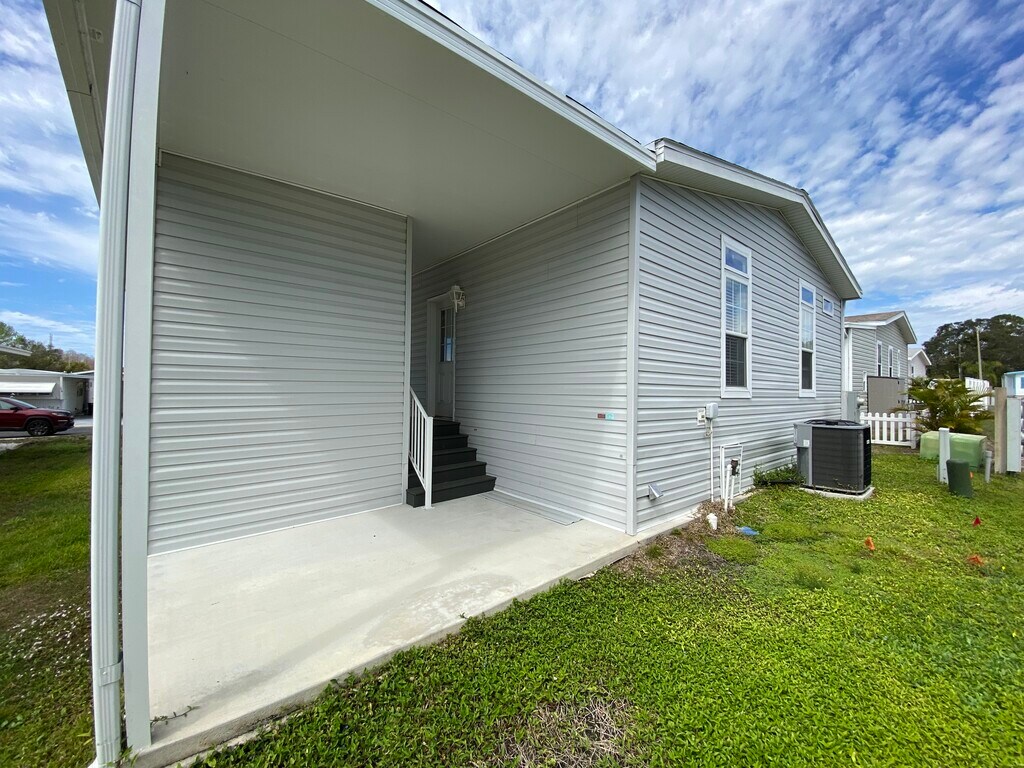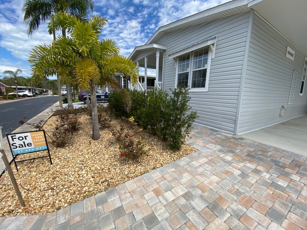 PRICE REDUCED... Gorgeous New Home! Located in a resort style, age qualified, 55+, land leased community (where you purchase/own the home itself but lease the ground it resides on).. Monthly lot rent includes cable tv, internet, lawn mowing and trash pickup. Currently $1263.37 per month. Stunning, new, Jacobsen home with spacious split floor plan and 3 bedrooms/2 bathrooms. The most amazing kitchen ever with huge center island, stainless steel appliances and loads of cabinets for storage. Dining room off to the side of the kitchen. Spacious, bright living room with soaring 9-foot ceilings. Primary suite fit for royalty with walk-in closet and attached ensuite bathroom with double sink vanity, linen cabinets and custom tiled, step-in shower. Two guestrooms (one with glass French doors and could be used as a Den or office) with guest bathroom between them (tub/shower combo unit). Laundry room. Wood plank style flooring. Outside, wonderful covered front deck to enjoy your morning coffee. Extra-large carport and storage shed for your bits and bobs. Attractive landscaping with irrigation system. This spectacular home can be yours today! Call for your tour today! This active, 55+ community highlights a lovely, tropical pool area, clubhouse, library, gym, sports courts, full time activities director and lake in center. Centrally located near all the fun things Tarpon Springs has to offer. Delicious restaurants, abundant shopping, golf, events, sponge docks and two beaches. Community is pet friendly (maximum 3 with no weight or size restriction on dogs although, community manager may request a dog interview).