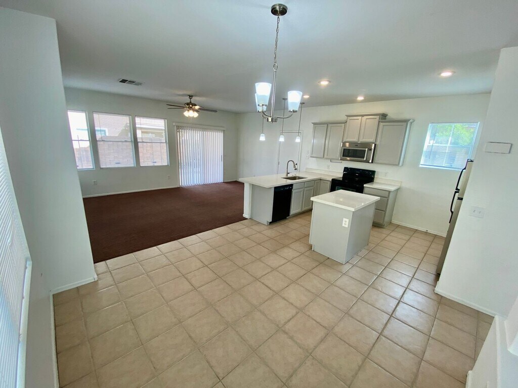High ceilings and great windows give a lot of natural light. Newer Carpet along with ceiling fans in bedrooms. Open kitchen into the family room with an island perfect for bar stool seating. Kitchen appliances are included in the rent with washer and dryer hook-ups. Master bathroom has dual vanities, separate shower/tub, and large walk in closet. Lots of space in the backyard for entertaining. Pets allowed per approval. A total must see, Schedule your showing today with Western Vistas .
