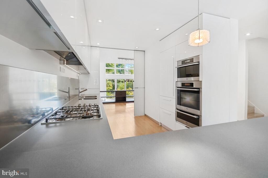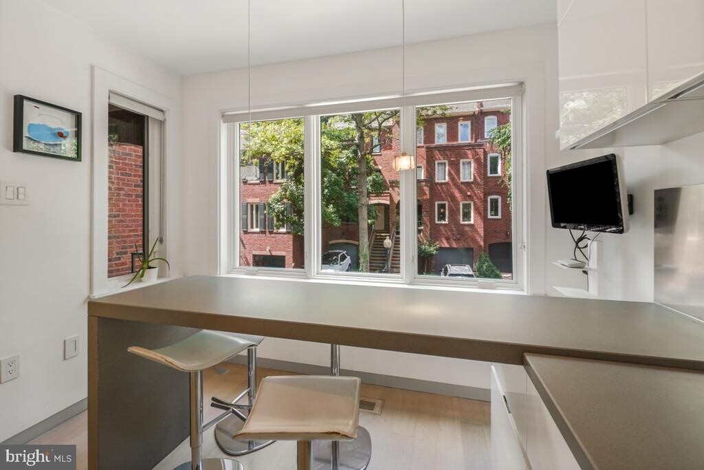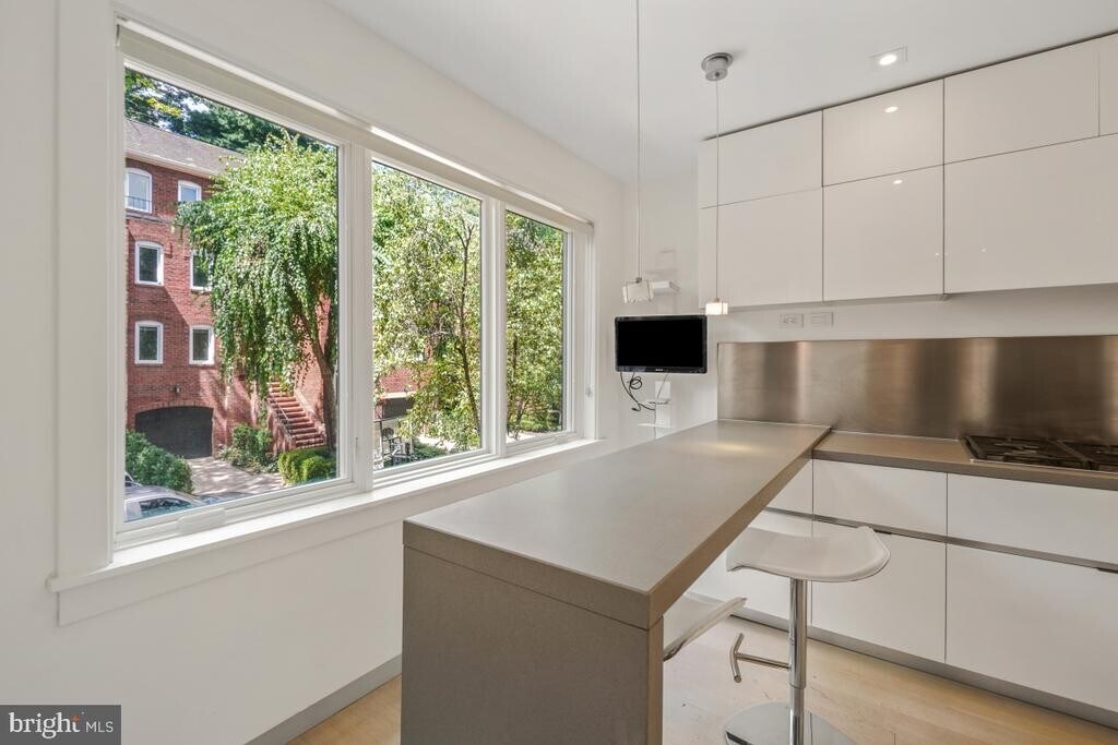Set within the exclusive 42-acre gated enclave of Hillandale—ideally located where Georgetown meets Burleith—this stunningly reimagined townhouse offers refined, modern living in a serene, park-like setting. Originally built in 1981, the home underwent a top-to-bottom renovation in 2014. Spread across four spacious levels, the residence features 4 bedrooms, 3.5 bathrooms, and a thoughtfully reconfigured main level that promotes seamless flow between the foyer, kitchen, dining area, and living space. The sleek, custom-designed Italian kitchen is equipped with Miele appliances, quartz countertops, and minimalist cabinetry—offering both aesthetic appeal and everyday functionality. Soaring two-story windows bathe the main living area in natural light, framing peaceful views of a pond and surrounding greenery. At the heart of the home, a striking double-sided ventless eco fireplace anchors the space, facing a dramatic floating glass catwalk and a suspended bookshelf that spans the second floor—adding architectural intrigue. Occupying the second level, the primary suite offers an ensuite bathroom with generous closet space and a dedicated office area. The upper floor features two additional bedrooms and a full bath—with both a soaking tub and a separate shower. The lower (street) level includes a family/recreation room with an ensuite bathroom and direct access to the landscaped rear garden. A hidden Murphy bed cleverly tucked behind a sliding bookcase adds versatility for guests or additional workspace. The home also features a powder room and an attached garage for added convenience. Residents of Hillandale enjoy the security of a gatehouse and a wealth of amenities, including a swimming pool, tennis courts, clubhouse, and beautifully maintained common areas. All tenants must register at the Hillandale office. Tenants are responsible for all utilities and renters' insurance.