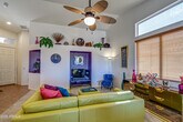 FULLY FURNISHED!!!! Dynamic entry with vaulted ceilings but wait,take a sharp left into first bedroom that is en suite dual sinks,w/separate tub/shower,private water closet and walk-in closet. Dining=seating for 6,Open room flows into kitchen island two-tiered,tons of cabinets and counter tops. Den offers closet,business center,sofa/bed,closet & ceiling fan. Large laundry room w/washer/dryer. Guest bedroom nicely appointed,guest bath with tub/shower combo. 2 car garage. Private fenced backyard. Gated community