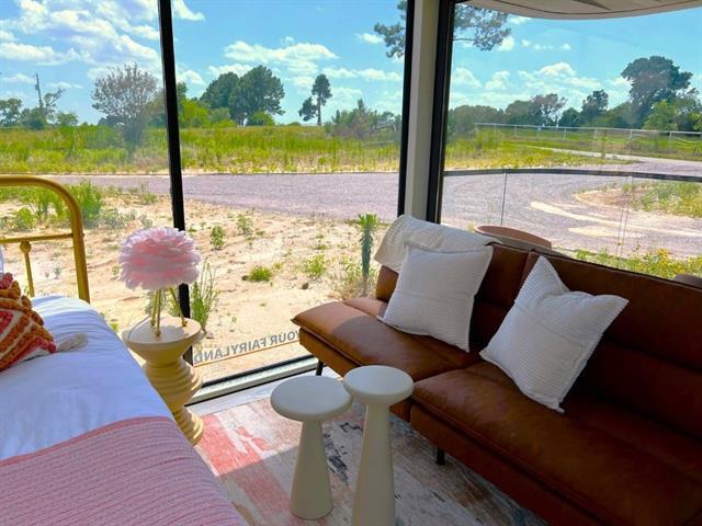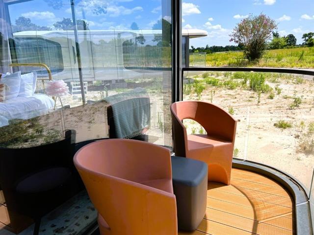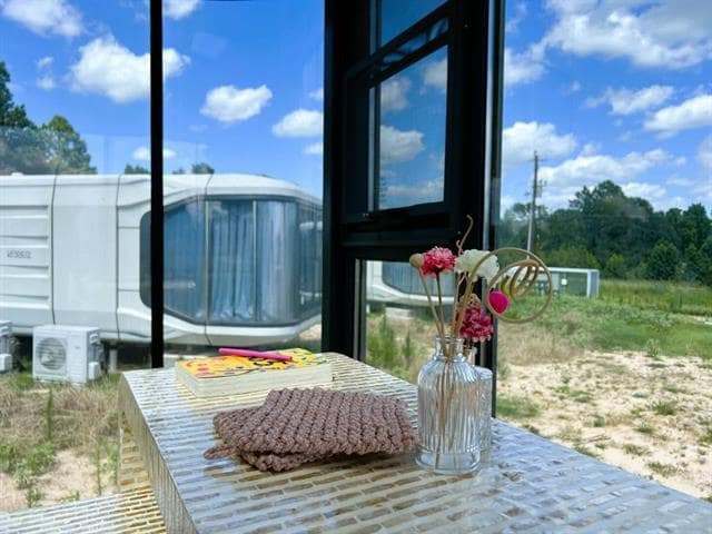 Come to enjoy our garden-inspired luxury capsule home, a romantic, nature-wrapped retreat on a peaceful 400-acre estate. Your private, glass-front capsule features a cozy living area, snug sleeping nook for stargazing, a well-appointed kitchen, private bath, heating, AC, and a small patio with serene views. Step outside to explore shared estate amenities: large fishing ponds (bring your gear), open meadows for picnics, and friendly longhorns and horses. Wander scenic paths and nearby hiking trails, or simply unwind in the quiet. Guests enjoy full private access to the capsule, with parking included; common outdoor spaces are shared with a small community of similar homes. Tranquility, comfort, and a touch of whimsy, perfect for couples and anyone seeking an authentic rural environment.