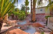 Fabulous single story home located at prestigious Las Quintas gated community has 3 bedrooms & 3 full bathrooms, office/library, sparkling pool and spa on a half acre lot. This beautiful home has vaulted ceilings, two tone paint, upgraded lighting, ceiling fans, plantation shutters and custom touches through out. The family room has floor to ceiling adobe style corner fireplace. The kitchen has center isle with cook top, stainless steel appliances, oven, microwave, trash compactor, recessed lighting and plenty of counter space. Primary suite is elevated and has cedar lined walk in closed with skylight, dual sink vanities, jetted tub, and walk in shower. You can walk to the pool directly from the master bedroom. It also has Nordic Sauna. The garage has skylights and space for three cars and lots of built in cabinets. The back yard is a Tropical Paradise with lots of palm trees, sparkling pool and spa, water feature (not operative) with rocks, very large covered cabana with a built in bar, built in BBQ and ceiling fans. Pet friendly. Centrally located to shopping, airport, UNLV and less than 15 minutes from the Las Vegas strip. Amenities included: central air, central heat, dishwasher, pool, storage, washer dryer, yard, sauna, custom bbq, and cabana. No Utilities included. Is pet friendly. Available now. $4,995/month rent. $4,995 security deposit required. Please submit the form on this page or contact Ali Cetin at to learn more.