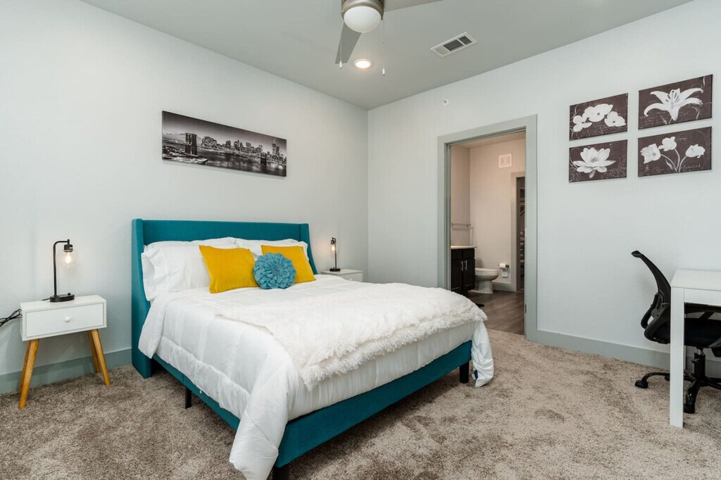 Feel at home in this spacious and serene 2-bedroom apartment located in the heart of Grand Prairie. Enjoy the comfort of a well-lit living room, a fully equipped kitchen, and a private patio where you can sit out and enjoy nature. This apartment is perfect for business travelers and remote workers, offering fast Wi-Fi and a convenient in-unit laundry. The apartment is relatively new and features stainless steel appliances and a walk-in closet. This apartment offers a comfortable stay with 2 Queen Bed Gel Memory mattresses, a couch, and an accent chair. The kitchen is fully equipped, and the apartment comes with free fast optic fiber Wi-Fi and unlimited HBO Max, ensuring you have everything you need for a pleasant stay. Free parking is provided in front of the building. Guests staying longer than 28 days will be responsible for paying utilities used during their stay. Located in the heart of Grand Prairie, this apartment offers easy access to a variety of dining and shopping options. The neighborhood is well-connected to public transportation and major highways, making commuting a breeze. Enjoy nearby parks, entertainment options, and attractions such as Six Flags Over Texas and Joe Pool Lake. Check-out time is 11 am unless otherwise approved. The apartment is not baby-proofed, so it may not be ideal for families with small children, although children are welcome at your discretion. Smoking is strictly prohibited inside or outside on the patio or within 50ft of the property, with a fine of $300 for violations. Parties and events are strictly prohibited, with a fine of $500 for violations. Unauthorized pets incur a fee of $250. Missing or damaged items will be charged at direct replacement cost plus a fine of up to $250. House rules violations can result in a fine of up to $1000 and/or eviction. The apartment is suitable for remote work with fast Wi-Fi available. [SI]