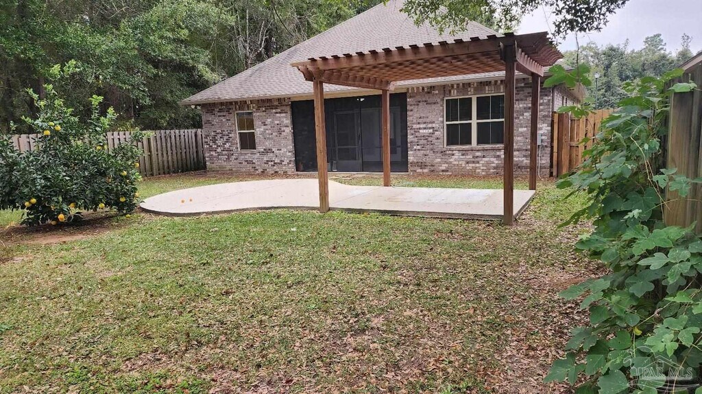 $200 off first month's rent. his beautiful 3 bedroom,2 bathroom home is at the end of a cul-de-sac in the quiet neighborhood of Fieldcrest. This home features an expanded driveway to a side-entry two car garage and a gorgeous double-door entrance from the front porch! Enter the elegant and welcoming foyer with high ceilings,hard surface floors,and a convenient coat closet! The open kitchen offers granite counters,gas stove/oven,tile flooring,and a large island/breakfast bar. Two large bedrooms are just off the living room,along with a full bathroom with granite counters and tiled floors. The separated master bedroom features trey ceilings,garden tub,and separate walk-in shower with a glass door. Additionally,there are beautiful granite counters,dual vanities/sinks,tiled floors,and large walk-in closet. Enjoy the great view from the screened in porch,open patio with pergola,fruit trees include Naval Orange,lemon and (3) blueberry bushes,all in your gorgeous privacy fenced in back yard! This home is conveniently located with great access to schools,shopping,hospitals,dining,and easy access to downtown Pensacola,NAS Pensacola and Whiting Field. No pets. At Rob Brooks Realty,we strive to provide an experience that is cost-effective and convenient. That's why we provide a Resident Benefits Package (RBP) to address common headaches for our residents. Our program handles insurance,identity protection,pest control,air filter changes,utility set up,credit building,rent rewards,and more at a rate of $39.95/month,added to every property as a required program. More details upon application. Total monthly payment (Rent + $39.95).