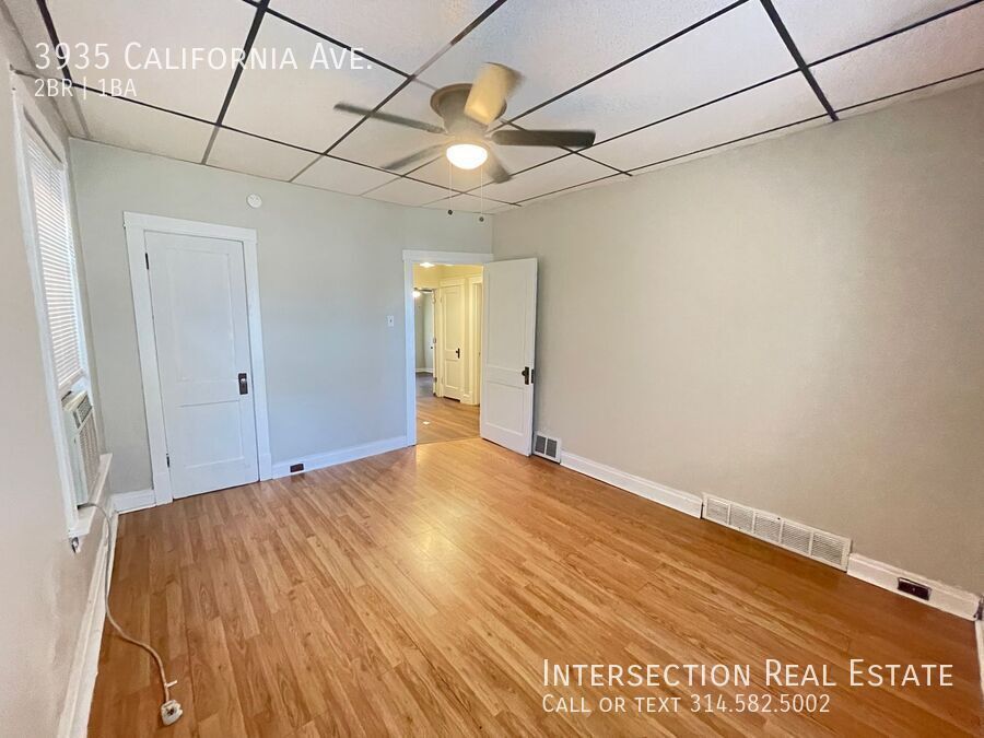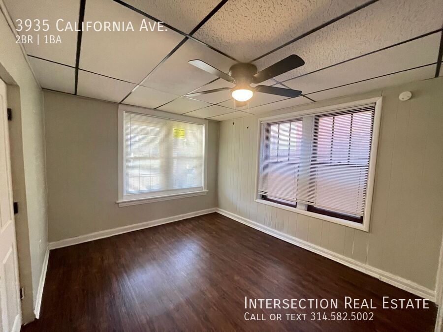 Welcome to this charming 2-bedroom, 1-bathroom home located in vibrant S. City. Inside, you'll find a decorative fireplace, vinyl flooring, and ceiling fans in each room, ensuring a comfortable atmosphere throughout the seasons. The welcoming front porch adds a touch of traditional charm and offers a perfect spot for relaxation. Enter into the living room, and continue through the spacious front bedroom that leads to the eat-in kitchen and rest of the home. There is an additional sunroom/dining room/office space at the rear of the home. This home combines comfort, convenience, and charm, making it a perfect choice for those seeking a cozy living space in St. Louis. Schedule a Showing: Front Porch No Utilities Included