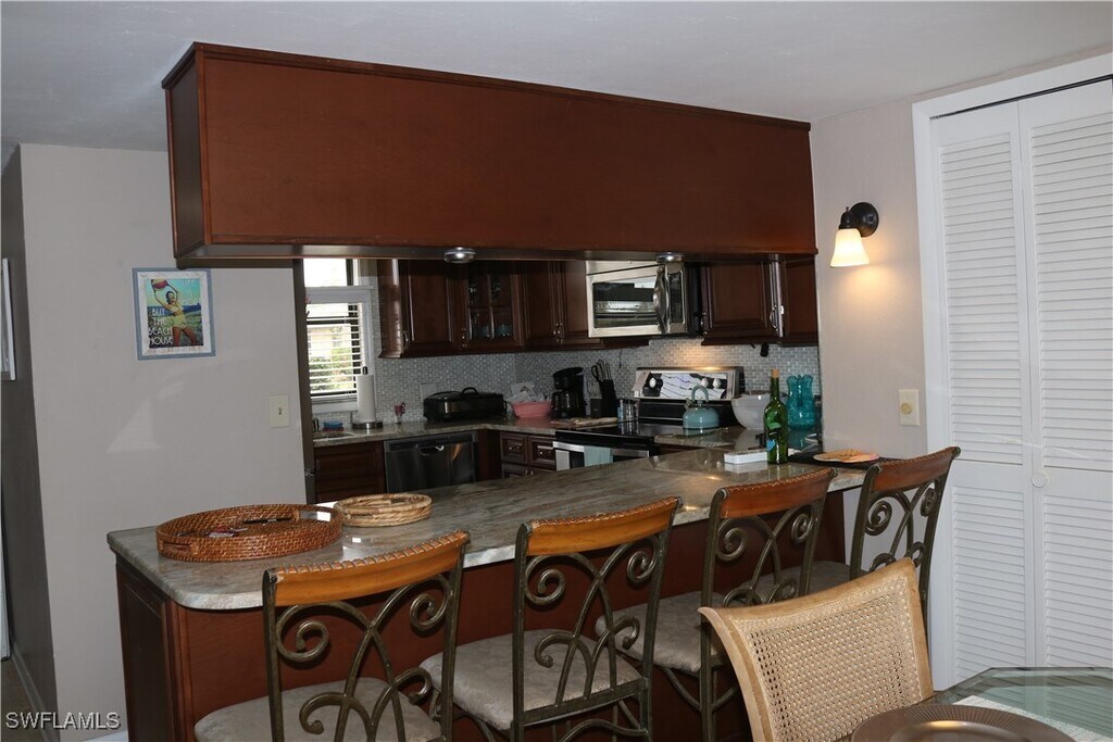 This beautiful,furnished,first floor 2 bedroom,2 bathroom condo is a must see! With a split floor plan and a large screened in lanai you can walk right out to the pool or canal - you may never want to leave. Have a boat? Subject to availability,there is dock space available with river access at a low additional charge for the duration of your lease if you wish. The kitchen has been recently remodeled to provide modern style and conveniences. This unit provides for a covered parking space and there is additional guest parking.