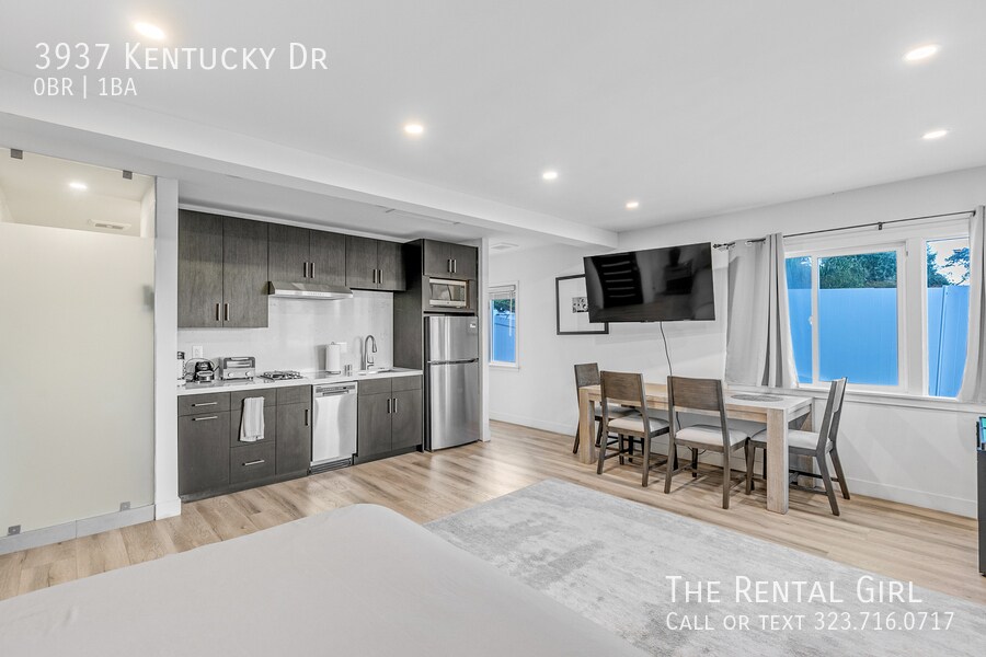 Set behind a single family home, this spacious, convertible studio ADU offers a calm, modern living space in the hills of Los Angeles — thoughtfully designed for comfort, flexibility, and privacy. The interior features an open, studio-style layout with the freedom to set up clear zones for sleeping, dining, and living. Wood-style flooring, recessed lighting, and multiple windows create a bright, airy feel throughout. The kitchen is clean and contemporary with modern cabinetry, stone-style countertops, and stainless steel appliances, making the space equally suited for everyday living or a more minimal setup. Enjoy the comfortsof heating and cooling all yer round with the new mini-split. Easily fit a bed the size of your choice and still have room for additional furniture including a work-from-home configuration. The bathroom is sleek and updated with a walk-in glass shower, modern vanity, and contemporary fixtures. A stacked washer and dryer is located inside the unit with added storage around it, adding everyday ease. The nook by the laundry that leads to the bathroom could act as a walk-in dressing room! Just outside, the ADU opens to a designated private patio that comes furnished, offering a comfortable outdoor extension of the living space — perfect for morning coffee, evening wind-downs, or working outside when the weather cooperates. Parking is included with one assigned, paved (uncovered) space located in front of the main house, just outside the gate on Kentucky Drive. The ADU may be available furnished or unfurnished — inquire for details. Located in the hills near Los Feliz, Silver Lake, and East Hollywood, this ADU offers a peaceful residential setting close to Griffith Park trails, neighborhood cafés, and easy access to the 101 — a great option for anyone looking for a tucked-away feel with city convenience. Interested in touring the ADU or pairing it with the main house? Reach out to Lindsay at The Rental Girl to schedule a showing and get full details.
