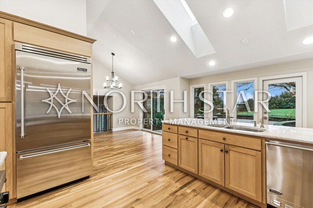 Come home to the majestic and serene countryside with this fresh and updated contemporary home in Wilsonville. Feel nature’s peaceful embrace driving up to your personal daily retreat! The home welcomes with an easily accessible circular drive, plenty of parking and an elevated stone front porch opening into a light filled entry. Beautiful hardwood floors flow throughout the main level, connecting the two separate living spaces, kitchen and designated dining area, all featuring large windows with tranquil and green pastoral views. Both living spaces feature fireplaces and custom built in shelving and storage. The living room also features a unique separate wet bar. The designated dining offers a wall of windows and doors that open to a large stone patio with a stone fire pit, perfect for soaking in the star filled evenings. The light and bright gourmet kitchen is open with excellent flow for multiple chefs or entertaining and has been updated with stainless steel appliances and quartz countertops. The main level offers a powder bath, large laundry room and spacious double garage with a wall of storage shelving for staying especially organized. The second level is conveniently divided in two separate wings allowing for quiet and privacy. To the right is the primary suite wing featuring a large primary bedroom with amazing countryside views, a generous en suite with dual vanities, walk in closet and a separate room, perfect for an office, gym or nursery. To the left of the landing flows into the other three bedrooms and bath, including a generous possible second master suite with private bath and more gorgeous and private views. Along with this property the 1400 square foot barn/shop that measures 37' X 37'. This barn includes power and a bathroom. SCHOOLS: Grade School: Boeckman Creek Primary Middle School: Meridian Creek High School: Wilsonville Sometimes Zillow populates amenities incorrectly. Please refer to our website for an accurate reflection of amenities as reported by the owner: North Star requires proof of insurance of $1M (one million dollars) before move in. An approved application does not constitute a contract or lease agreement with the management company or homeowner. An approved application does not constitute a contract or lease agreement with the management company or homeowner. No smoking and no pets please.