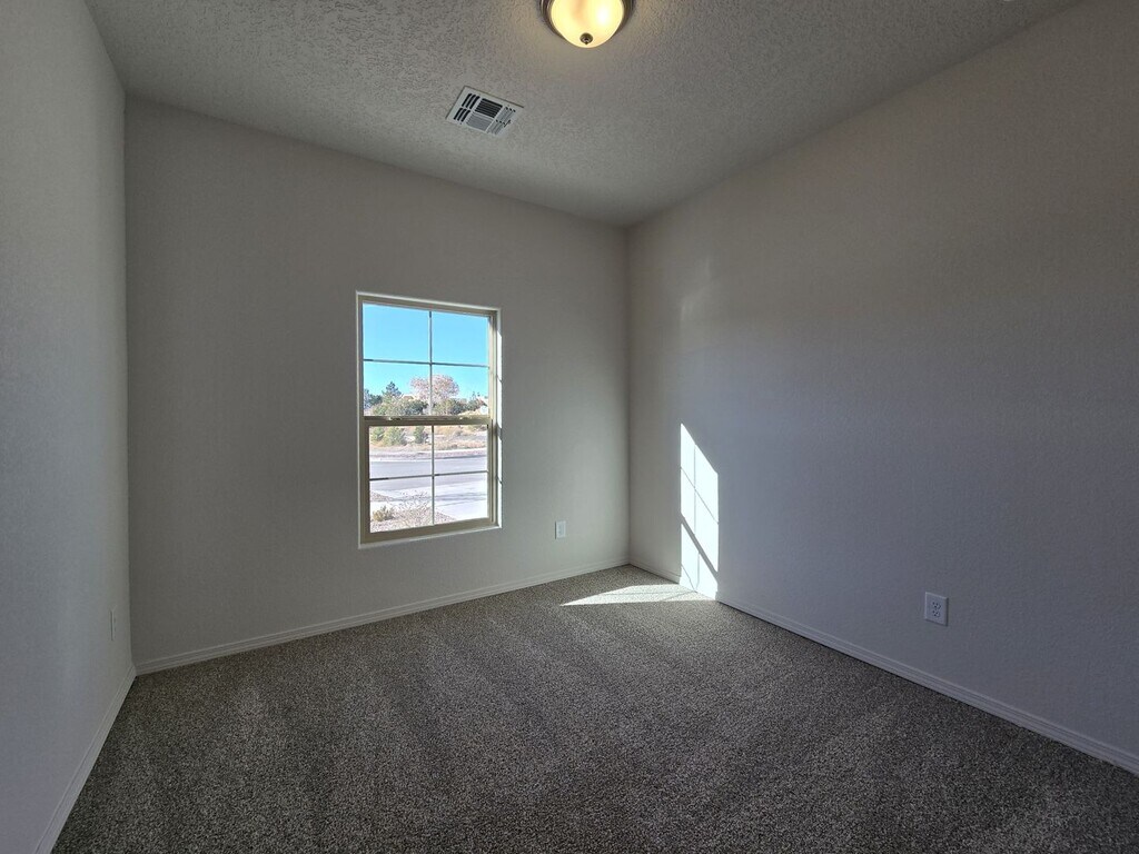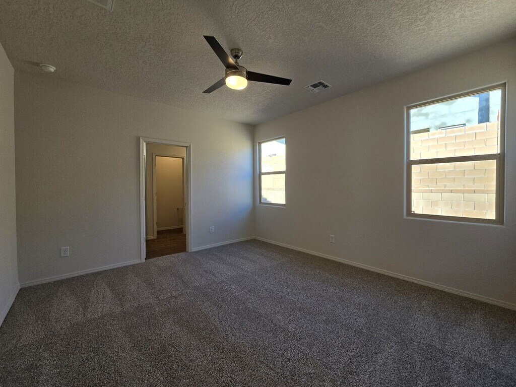 Experience the pinnacle of modern design in this stunning 4-bedroom, 2-bathroom residence. Defined by a striking monochromatic exterior and high-contrast interior palette, this home offers a seamless blend of bold style and everyday comfort. At the heart of the home, the open-concept great room features wide-plank flooring and a chef’s kitchen designed for entertaining. Sleek charcoal cabinetry, pristine white quartz countertops, and a massive island create a dramatic focal point, while expansive sliding glass doors provide a natural flow to the outdoor spaces. The primary suite serves as a private retreat, boasting a spacious walk-in closet and a spa-inspired bathroom with a frameless glass shower. Three versatile guest bedrooms offer ample space for family or a quiet home office, all finished with the same high-end matte black fixtures found throughout the home. The luxury continues outside in a professional-grade backyard oasis. Featuring a covered dining patio, this space is built for year-round enjoyment. Complete with a pristine two-car garage and a dedicated laundry room, this home is a masterpiece of modern living. Brant Goodman, Qualifying Broker. Rental Fees & Policies Application Fee • $50 per applicant age 18 or older. Move-In Costs • Security deposit equal to one month’s rent • First month’s rent due at lease signing Pet Policy • $250 non-refundable pet administration fee • $50 per month, per pet Utilities • Tenants are responsible for establishing and paying all utilities directly with the utility companies. Renter’s Insurance • Tenants are required to maintain renter’s insurance for the full duration of the lease Contact: Katelynn James Landseer Management 613 Old Santa Fe Trail Santa Fe, NM 87505