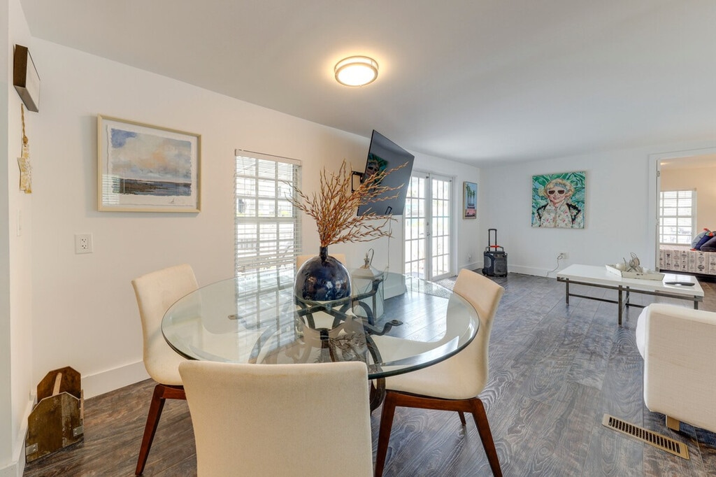 Your extended stay in paradise awaits at this charming 3-bedroom, 3-bath vacation rental in Tavernier, FL. Start your mornings taking in tranquil canal views from the deck or gazebo. This single-story home requires steps to enter. The apartment offers a covered deck with an outdoor dining area, a gazebo, a hot tub, and a ceiling fan. Inside, you'll find 4 Smart TVs, a 4-person dining table, and a fully equipped kitchen with a stove, oven, refrigerator, microwave, drip coffee maker, dishware, flatware, and cooking basics. Pets are welcome with a $300 fee. Parking is available with a driveway for 1 vehicle and free street parking. An additional 2-bedroom home for 6 guests is available next door with a separate nightly rate. Located just 1 mile from Harry Harris Beach, this apartment is close to top coastal attractions like John Pennekamp Coral Reef State Park. Guests will have access to the entire property via keyless entry. No smoking, no events, parties, or large gatherings are allowed. Must be at least 25 years old to book. Additional fees and taxes may apply. Photo ID may be required upon check-in. [SI]