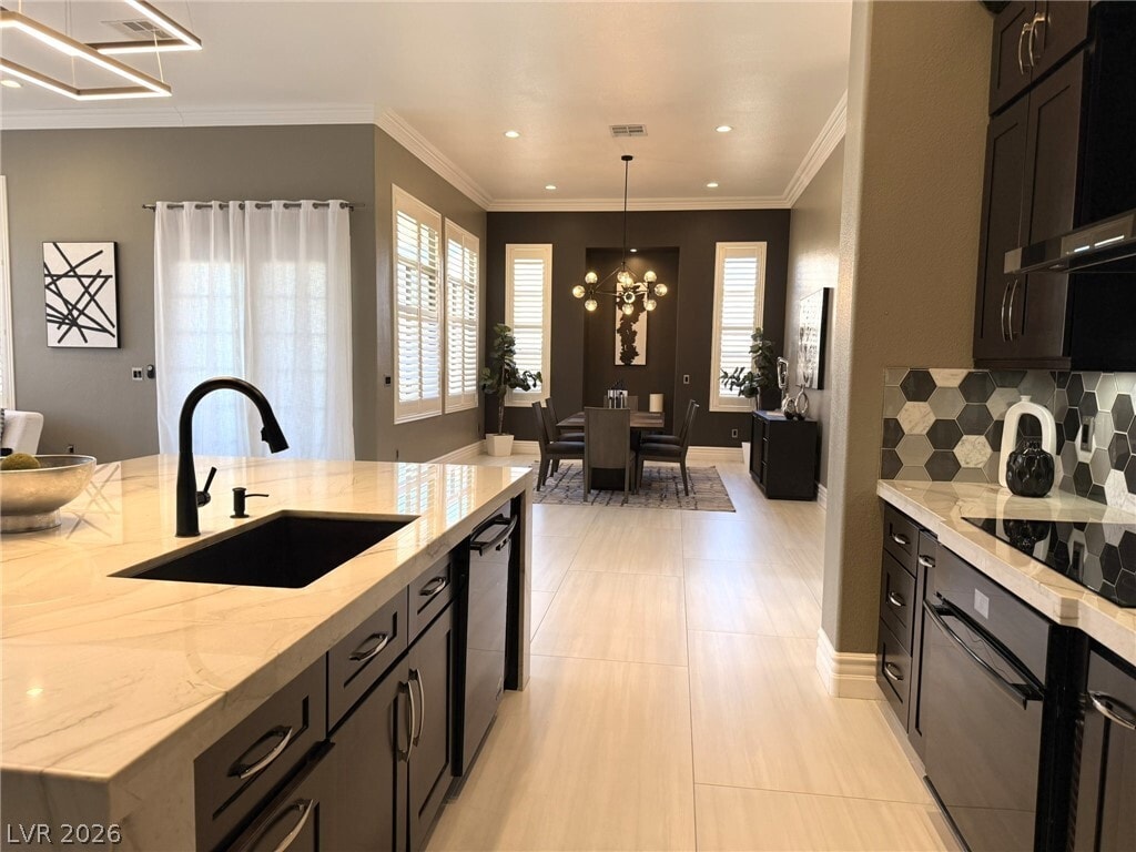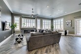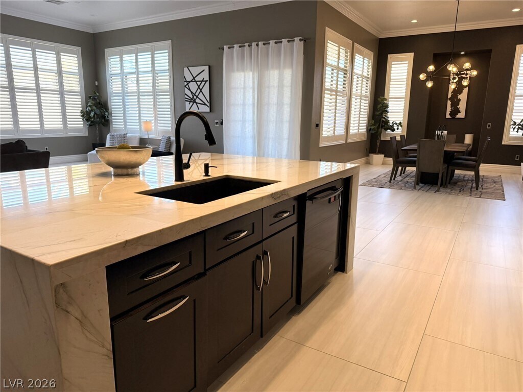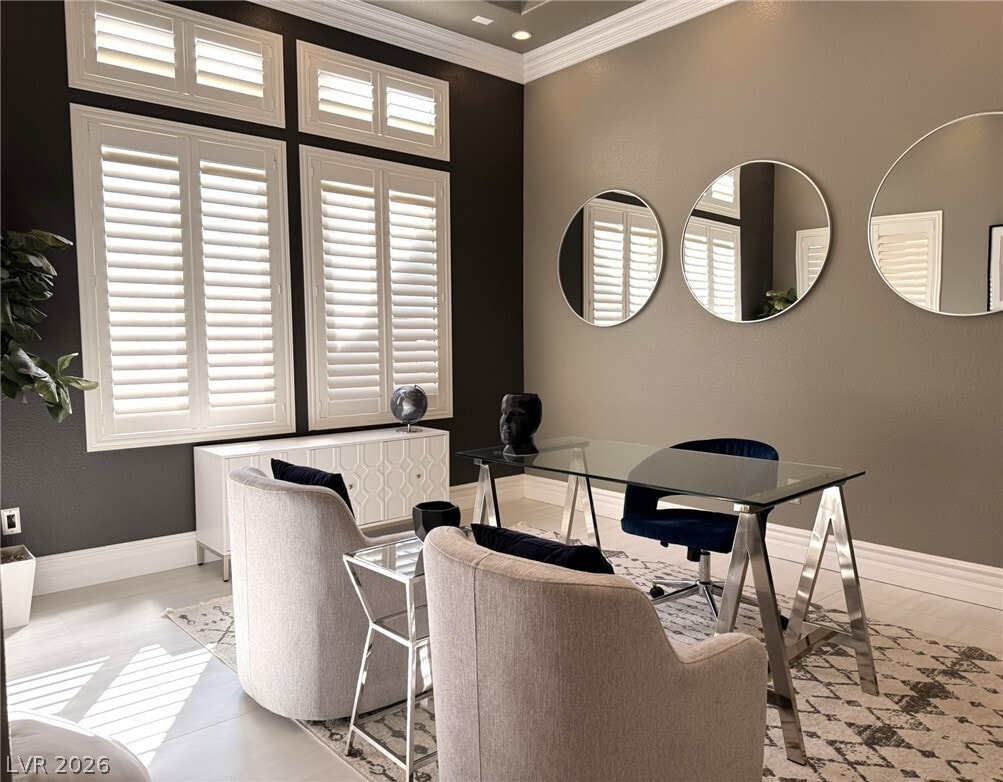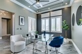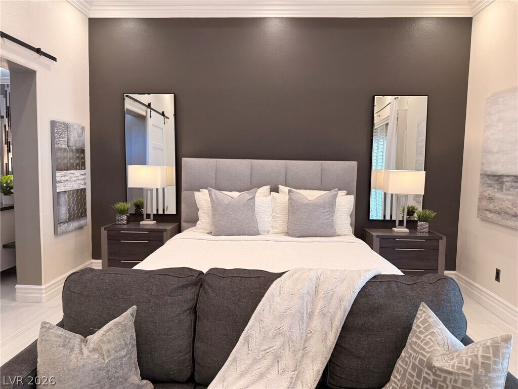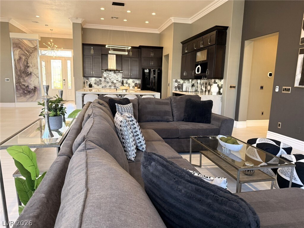 Welcome to Rhodes Ranch - a great place to stay and play! Enjoy the incredible amenities of this guard gated community while living in a beautifully remodeled and professionally decorated single story home. Incredible 12 foot ceilings create luscious space in the great room while windows all around bathe this room in light. A modern kitchen and formal dining room just beyond make the gathering portions of this house just perfect. The primary bedroom, separate from the rest, opens to a bathroom like no other. Two secondary bedrooms and a bright and cheery office complete the picture. The backyard is quiet and private. This home comes completely furnished with a fully equipped kitchen and linens/towels. Also included are HOA dues, yard service and maintenance. $600 NONREFUNDABLE EXIT CLEANING FEE REQUIRED. Rate is for a 12 month lease.