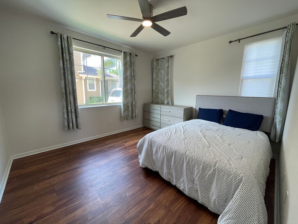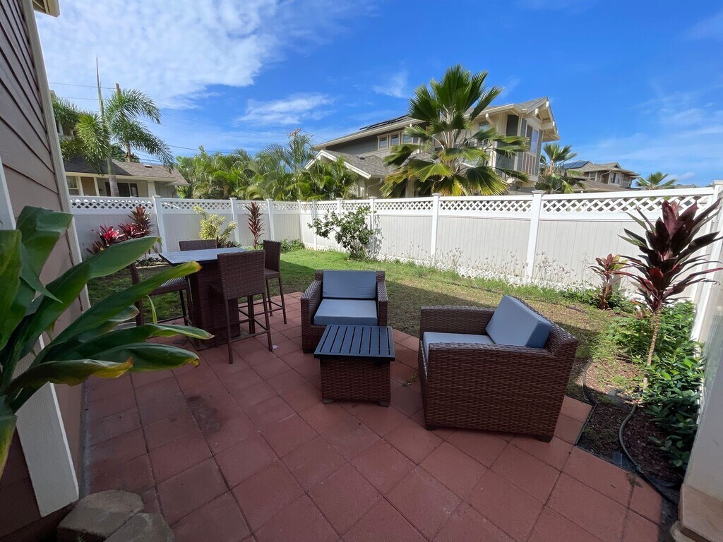 Large, renovated and fully furnished three bedroom/two and a half bath two-story home available immediately! Open kitchen area with dining alcove and spacious and bright main living space, private and peaceful lanai and fully fenced backyard. Two bedrooms are located upstairs with the primary bedroom, en-suite bathroom and walk in closet located on first level. Two-car garage, W/D, D/W. 12 Month lease term, pets approved on a case by case basis. $5,000 + tax, tenant pays electricity and water. Internet/cable and garbage included. Please call Kate Grumet R(S) or Lauren Cyr R(S) at Quam Properties Hawaii to discuss further and schedule a viewing, .