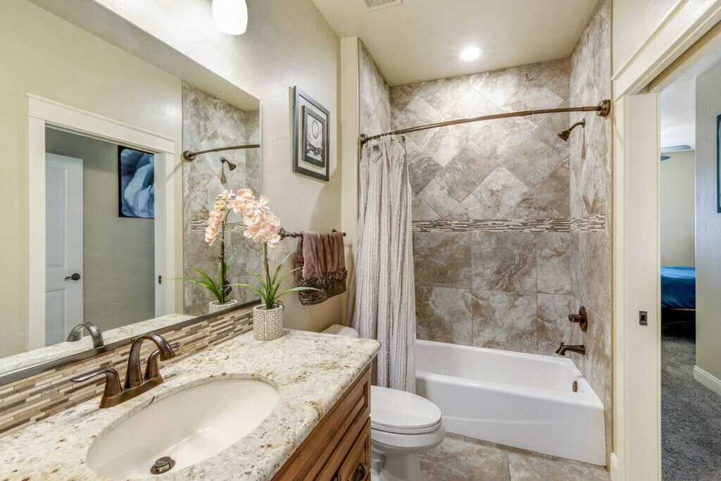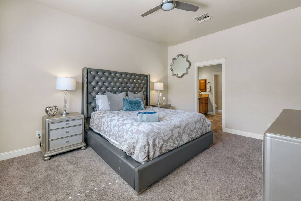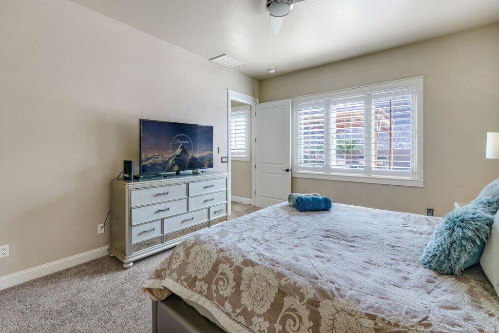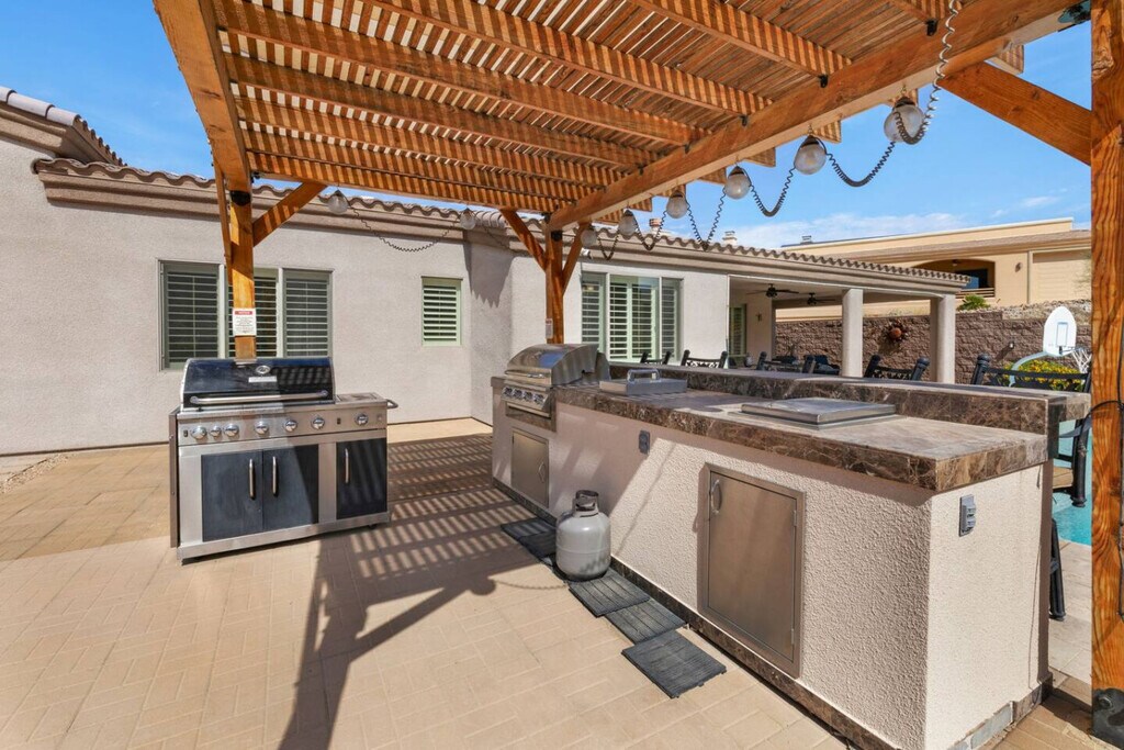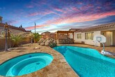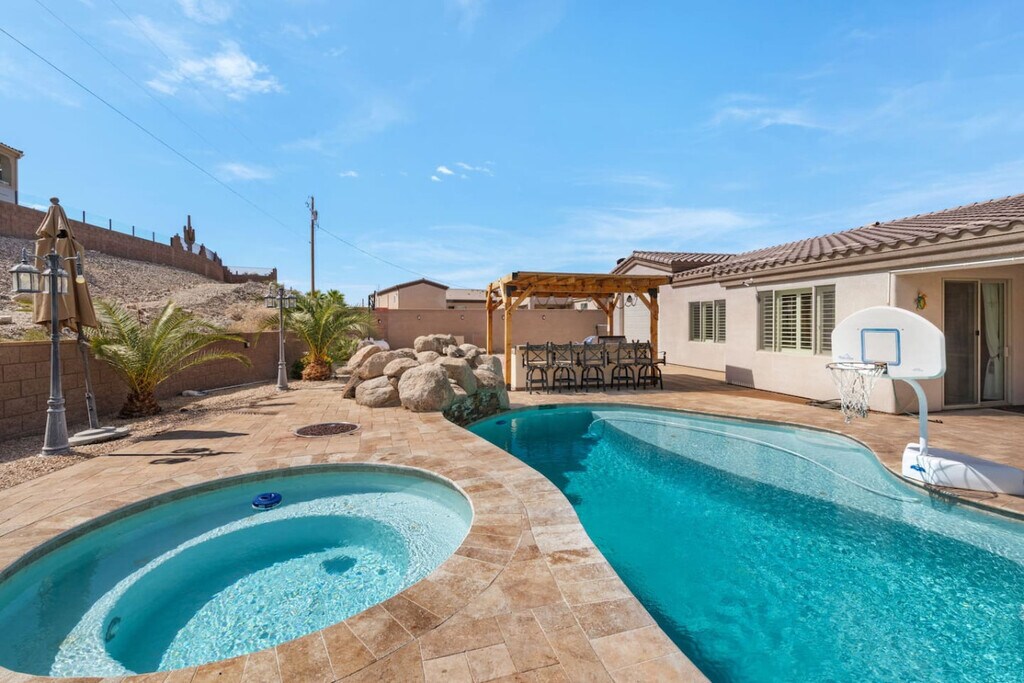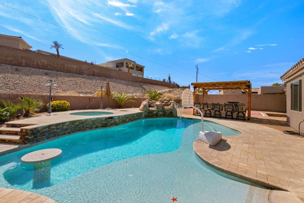 Experience the ultimate getaway at this spacious vacation rental, perfect for families and friends to gather and create lasting memories. Enjoy a private pool and relaxing spa, challenge each other on the basketball court, or unwind around the cozy firepit. With plenty of indoor and outdoor space, modern amenities, and fun activities for all ages, this home offers the perfect balance of relaxation, entertainment, and togetherness for an unforgettable stay. Discover the perfect mix of luxury, comfort, and convenience in this contemporary home built in 2016. Featuring 4 spacious bedrooms, including 3 with private baths, and an open-concept design with soaring ceilings and upscale finishes, this home is ideal for entertaining. Step outside to a backyard paradise with a resort-style pool, hot tub, rock waterfall, covered kitchen and bar, full-size basketball court, and a 50' RV garage to store all your toys. LIVING ROOM >Open concept living/dining >Smart TV (log in to own streaming apps) DINING ROOM >Seating for 6 KITCHEN >Fully equipped kitchen with supplies >Keurig coffee maker >Stainless steel appliances >Kitchen island seating for 4 BEDROOMS >Bedroom 1: Queen bed, ensuite bathroom, Smart TV >Bedroom 2: Queen bed, Smart TV >Bedroom 3: Queen bed, ensuite bathroom >Bedroom 4: King bed, ensuite bathroom, Smart TV *Washer and dryer in house with supplies BATHROOMS >Bathroom 1: Walk in shower >Bathroom 2: Shower/tub combination >Bathroom 3: Walk in shower BACKYARD >Heatable pool >Hot tub >Fire pit >Covered patio with outdoor seating >Dining table for 6 >BBQ grill >Basketball court PARKING >No garage access >Driveway parking Guests will have access to the entire home minus the garage. We want your vacation rental experience to be memorable and convenient. Keeping a comfortable and clean property is what is most important to us. We will be available anytime via messenger to answer any questions or concerns. We take the approach of being hands off on the property unless needed - we want you to feel like you have the home all to yourself! OTHER THINGS TO NOTE >Must be 25 years old to book >No parties >No events >No smoking inside >Quiet time after 10pm (includes loud voices/music) - Per city ordinance >No unauthorized guests other than those on the reservation >Monthly rental November to March. This home is not available for a long term lease POOL HEATING >$125/day (full stay required, 2 day notice required, heated to 88 degrees) >Hot tub heating included in rental amount >For longer than 7 day stays there will be an additional $15/day charge for hot tub heating PETS >Not a pet friendly home >$200 charge if pets are brought into home PROPANE >We try to keep our propane tanks full, but we aren't always sure. If you have to go fill the tank, please send us the receipt so we can reimburse you. DEPOSIT >We may ask for a $250 deposit hold, or $500 for holidays TPT#21622789 VR25-01490 LEFT BEHIND ITEMS >$20 service charge added to shipping cost