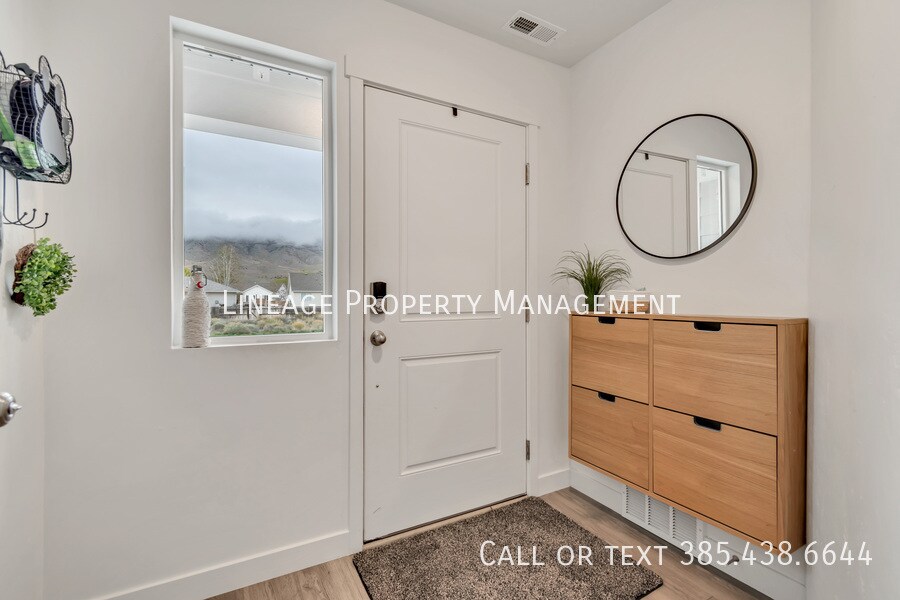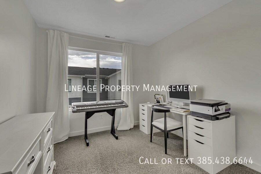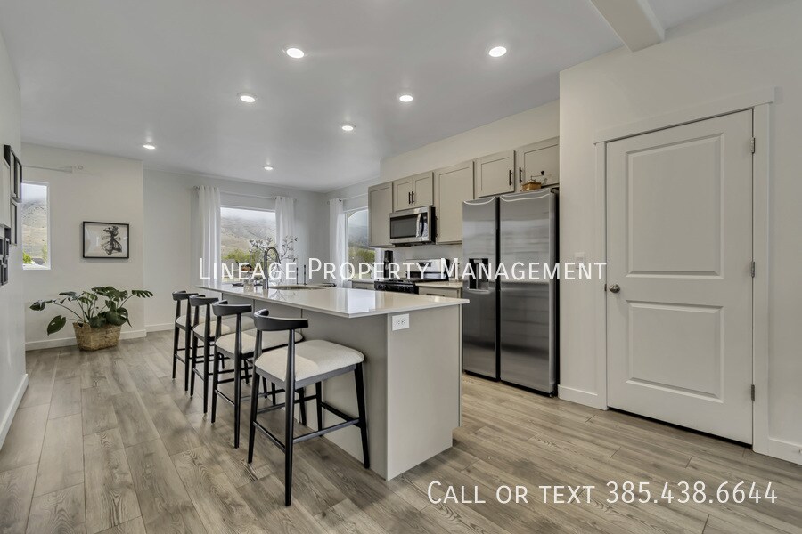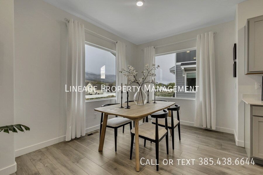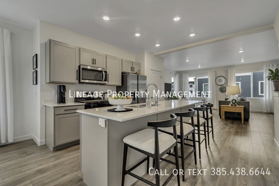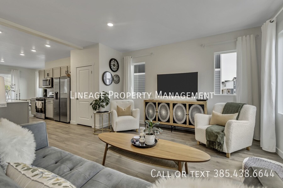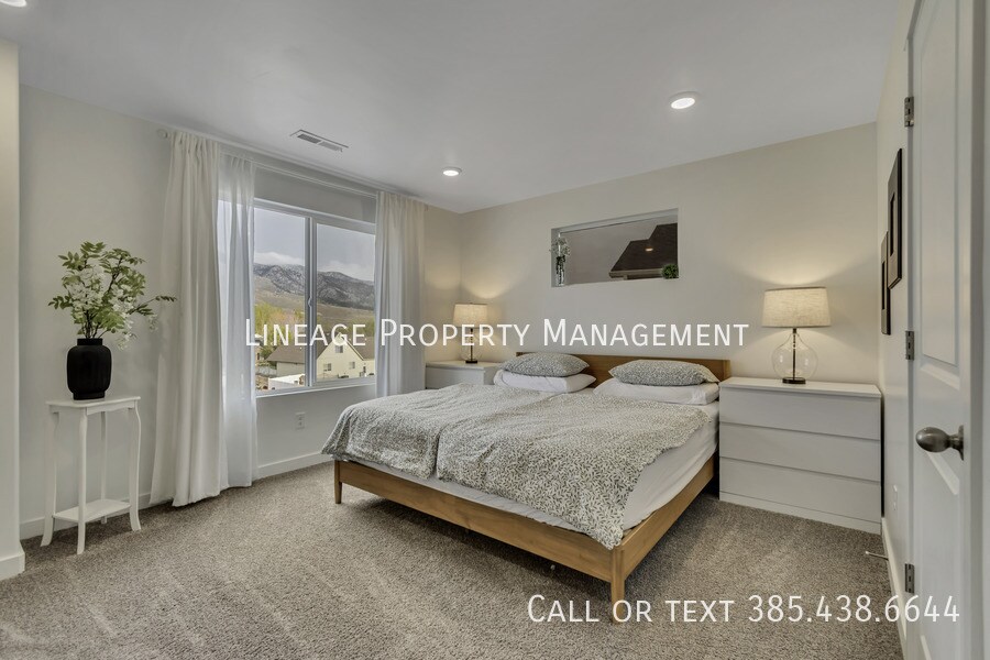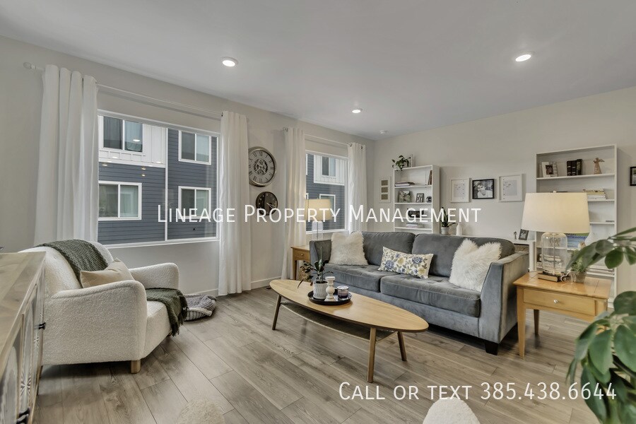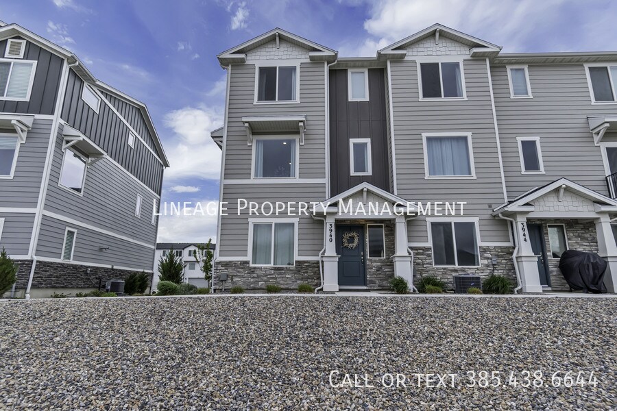 End-unit townhome with unobstructed mountain views and a walking trail right out front. Important: The ground-floor garage and bedroom are separately walled off and not accessible from the main living areas. No garage parking is included with this unit. Three stories | 3 bedrooms | 2 full baths | 1,600 sq ft The main living level features an open-concept kitchen, dining, and living room with 9-foot ceilings. The top floor has three bedrooms including a primary suite with walk-in closet and private bath, plus a second full bath and in-unit laundry. As an end unit, you get more natural light, extra privacy, and nothing blocking your view of the mountains. Community amenities include a clubhouse, pool, biking trails, and picnic area. Smart home package, video doorbell, and smart thermostat included.