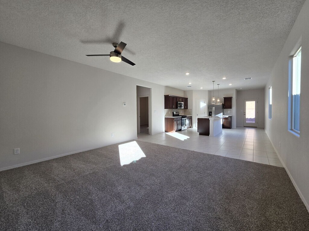 Experience the perfect fusion of contemporary design and effortless functionality in this stunning 4-bedroom, 2-bathroom residence. Boasting a crisp, modern aesthetic and a thoughtfully curated open-concept floor plan, this home serves as a turnkey sanctuary tailored for a high-end lifestyle. The heart of the home is a chef-inspired kitchen where a massive quartz-topped center island anchors the space. Rich espresso cabinetry creates a striking contrast against a chic herringbone tile backsplash, complemented by designer pendant lighting and a premium suite of stainless steel appliances. This culinary hub flows seamlessly into the expansive living areas, supported by a large walk-in pantry with wrap-around shelving. The private quarters are led by a tranquil primary suite featuring a spa-like ensuite with a dual-sink quartz vanity and a generous walk-in shower encased in floor-to-ceiling designer tile. Three additional bedrooms provide plush carpeting and total flexibility for guest rooms or a bright home office. Every detail is meticulously finished, from the matching quartz counters in the guest bath to the pristine two-car garage and dedicated laundry room. Outside, the private, walled backyard offers a low-maintenance desert escape with a covered patio, perfect for evening relaxation. From its striking curb appeal to its sophisticated interior, this home represents a rare opportunity for luxury living in a serene setting. Brant Goodman, Qualifying Broker. Rental Fees & Policies Application Fee • $50 per applicant age 18 or older. Move-In Costs • Security deposit equal to one month’s rent • First month’s rent due at lease signing Pet Policy • $250 non-refundable pet administration fee • $50 per month, per pet Utilities • Tenants are responsible for establishing and paying all utilities directly with the utility companies. Renter’s Insurance • Tenants are required to maintain renter’s insurance for the full duration of the lease Contact: Katelynn James Landseer Management 613 Old Santa Fe Trail Santa Fe, NM 87505