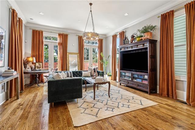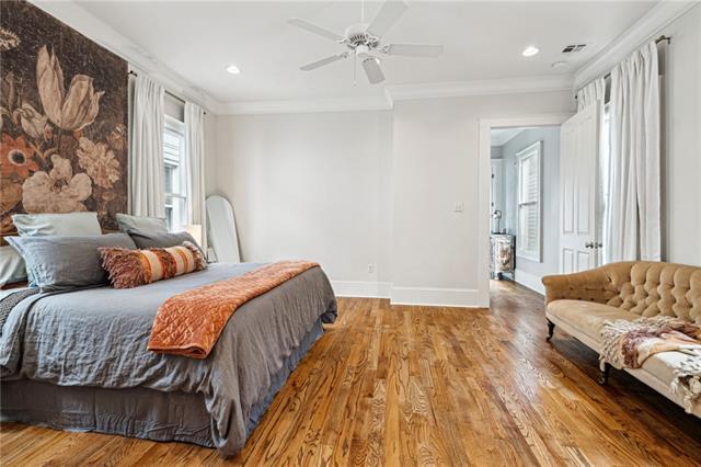 Bywater Beauty! This beautifully designed two-story home blends historic charm with modern elegance. Inside, a spacious layout features high ceilings, hardwood floors, and custom light fixtures and window treatments. The open kitchen is fully equipped with high-end appliances and flows seamlessly into the large living area—perfect for entertaining. Upstairs, two private bedrooms each offer ensuite baths. The primary suite boasts two large closets, a luxurious soaking tub, a step-in shower, and a double vanity. The second suite includes a private balcony overlooking the street. Outside, enjoy a large fenced yard for added privacy and a charming front porch ideal for morning coffee. Located just moments from Crescent Park, Bacchanal, top restaurants, and a quick trip to the French Quarter. A rare opportunity in one of New Orleans’ most sought-after neighborhoods!