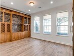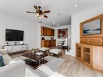 Upgraded contemporary townhome with lots of custom built-ins! You'll love the built-in wine rack, bookcases and storage available. Easy-care wood-laminate flooring throughout living areas; ceramic tile in baths. Dual sinks in primary bath and one guest bath. All three bedrooms have full bath. Island in kitchen, gas range, built-in microwave, balcony off primary bedroom. First floor has flex space for exercise or office with half bath and elegant sliding barn door. 2-car garage. Popular Addison area. All Addison amenities available to occupants. $10 one-time fee to Addison Athletic Club as long as occupant lives in Addison. Sand volleyball court behind these units. 2022-2023 UPDATES: new interior paint including doors and trim, wood and tile flooring installed, barn door in 1st level flex room, granite added to half bath and guest baths, new toilets in all baths, new tub in guest bath, faucets upgraded, cabinets resealed, recessed lighting added, garage painted, both ACs serviced. 2025 UPDATES: Kitchen cabinets repainted white. Occupant TO SUPPLY REFRIGERATOR, WASHER & DRYER. LL PAYS HOA FEES. Occupant MUST SHOW PROOF OF RENTAL INSURANCE BEFORE MOVE-IN. APPLICATION FEE: $50 Per Adult