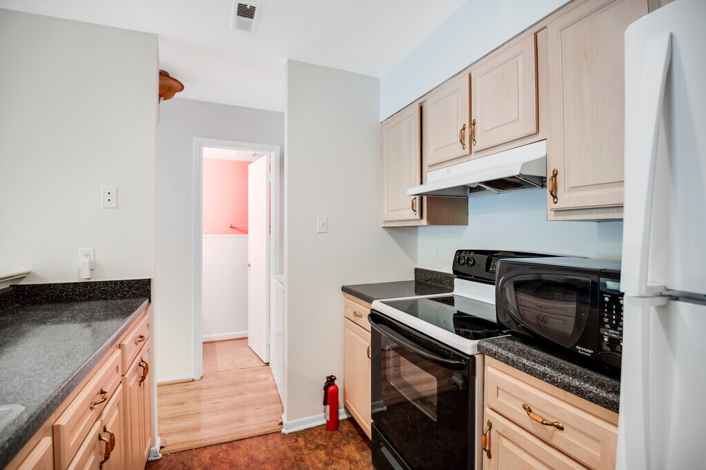 1 bed / 1.5 bath condo with den available April 1st at 3944 Woodhue Pl #22, Alexandria, VA 22309 Unbelievable Alexandria condo featuring a fireplace, open-concept living and dining room, and a private patio! Two parking spaces included! VIRTUAL and IN-PERSON TOURS AVAILABLE - ONLINE APPLICATION - PLEASE INQUIRE! Get your application started for this condo that features tall ceilings, lovely flooring, track lighting, large windows, tons of natural light, gourmet kitchen, great countertop space, picturesque cabinets, large bedroom, ceiling fans, refreshing bathrooms, freshly painted walls, ample closet space, and in-unit laundry. Community amenities include a pool and business center. This condo comes partially furnished with two side tables, a chair, and television stand. This outstanding Alexandria location provides easy access to local restaurants, shopping, public transportation, and much more. Get your grocery shopping done and grab all your necessities from Costco Wholesale, go for a lovely nature hike at Huntley Meadows Park, enjoy a cup of coffee and a treat at Leina's Bakery, visit historic George Washington's Distillery, or take a 15-minute drive to famous downtown Old Town for a stroll along the Potomac River, boutique shopping, and a gourmet meal. 12-month lease preferred. Water included. Pets are case-by-case with landlord approval. Washer and dryer in-unit. Vouchers are accepted. Apply online in 10 minutes! Please reach out with any questions and we'll be happy to speak with you!