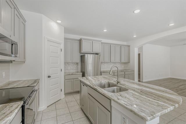 Built by Highland Homes in 2020 and ready for immediate occupancy! This exceptional single-story residence presents a beautifully designed, open, and inviting floor plan. The property is defined by a large, versatile entertainment area, where the modern kitchen effortlessly merges with the dining and living spaces, promoting a seamless flow for gatherings and daily living. Enhancing the comfort and charm of the home are the thoughtfully integrated window seat nooks in both the kitchen and the primary bedroom, offering cozy reading corners or convenient work spaces. The three bedrooms are all bathed in natural light and provide generous closet space, ensuring comfort and functionality for the entire family. Adding a touch of elegance, the kitchen features a stunning curved island complete with seating, making it the perfect hub for culinary experiences and casual socializing.