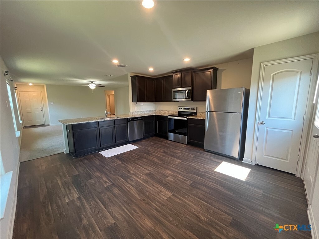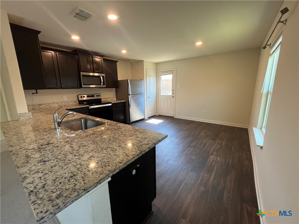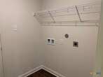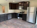 Fabulous 3/2 available. Granite counters,vinyl wood floors,dark wood cabinets and plenty of window light give this home a clean and sharp feel. Fully equipped kitchen with stainless steel appliances. Includes refrigerator,microwave,oven/stove,dishwasher,disposal. 2 car garage. Fenced backyard. Pet friendly. Washer/dryer connection located in laundry room inside. Community playground,splash pad,walking trails,shaded ramadas and picnic area. Literally a minute from I35 for fast/easy access to San Antonio,Austin,etc. Elementary minutes away! Resident responsible for $20/mo Utility & Maintenance Reduction Program (see app. guidelines). $150 admin fee due upon approval along with deposit. Renter's insurance required.