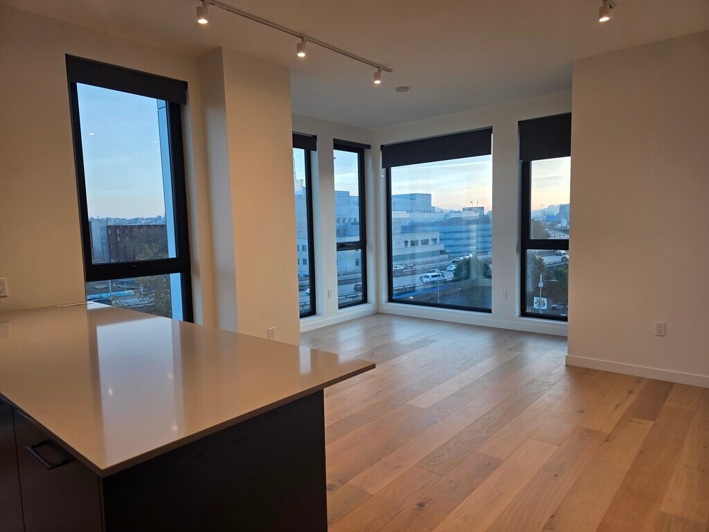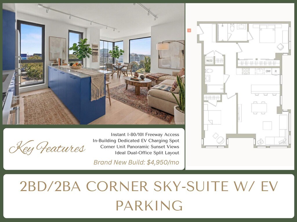 Be among the very first residents of this stunning 7th-floor corner 2-bedroom, 2-bath residence at RENOU (988 Harrison/395 6th), new luxury condominium building. Corner orientation with floor-to-ceiling windows delivering sweeping skyline and Sunset views, natural light pours in all directions. Interior highlights • Gourmet kitchen with rare gas range, full Bosch stainless appliance package, refrigerator & dishwasher, quartz counters • Central heat & A/C (energy-efficient heat pump) • Full-size Bosch in-unit washer & dryer • Ample closet, Grohe fixtures, frameless glass shower • Latch smart keyless entry + pre-wired and ready for Google Fiber Webpass Included in the rent ? Deeded EV-ready parking space in secure garage ? Immediate access to 101, 280 & I-80 ? Mins walk to Caltrain (4th & King station) ? Mins walk to Chase Center and Oracle Park ? Whole Foods, Coffee, and parks closeby Full building amenities included (owner pays HOA dues) • Rooftop terrace with BBQs, dining areas • Attended lobby (business hours) + secure package room • Bike storage • Pet-friendly building (cats and small dogs welcome) Available now for immediate move-in 12-month lease minimum. Qualification Criteria • Combined household gross income at least 4× monthly rent (W-2, 1099, RSUs, vouchers, trust income all accepted) • Minimum credit score 720 (full credit report reviewed holistically, exceptions made for strong compensating factors) • Positive prior landlord references and clean eviction history • We gladly accept portable tenant screening reports (PTSR) • Application screening fees paid by applicant Tours available 7 days a week, reply with your preferred day/time and we’ll get you in quickly. This corner unit with parking, views, and every modern upgrade is truly move-in ready.
