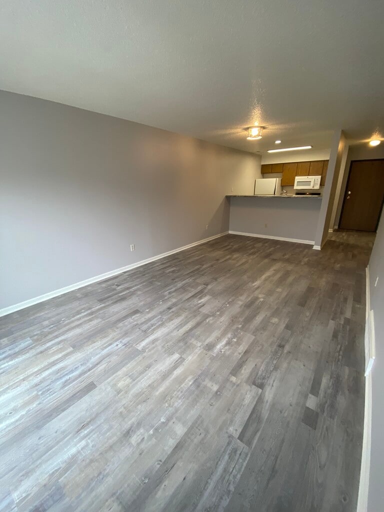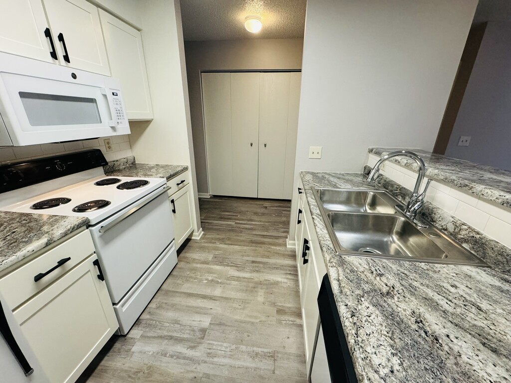 One bedroom, one bath apartment with nice, spacious, floor plan. The kitchen comes with major appliances like dishwasher, refrigerator, over the range microwave and range. It has a bar that separates it from the living room while still allowing natural light to flow in. Good sized living area with large window. The bathroom has a tub/shower combo. Several storage closets throughout the unit. Central AC/heat. Free open parking in private lot. Washer/dryer on-site.This unit is currently under renovation and receving the following updates: Luxury vinyl plank flooring throughout, kitchen countertops, subway tile backsplash, reface all cabinets, lighting, 2" faux wood blinds, cosmetic updates to bathroom, refinish shower/tub, paint all doors, baseboards, all new door handles.Great location in North Liberty right off N Dubuque St. allowing easy access to downtown Iowa City and Coralville. Located above the Izumi Hibachi Bar and Grill.Free parking in private lot!Washer and dryer on site (coin-opp)
