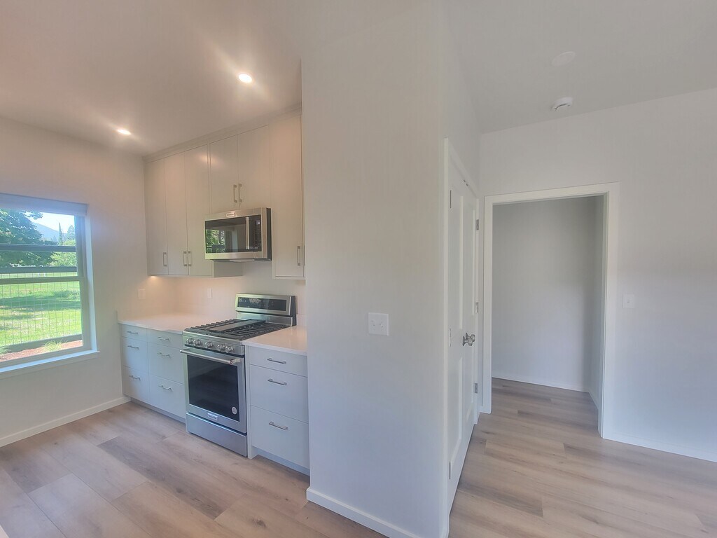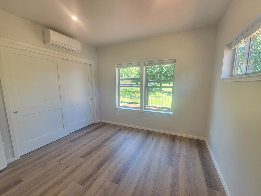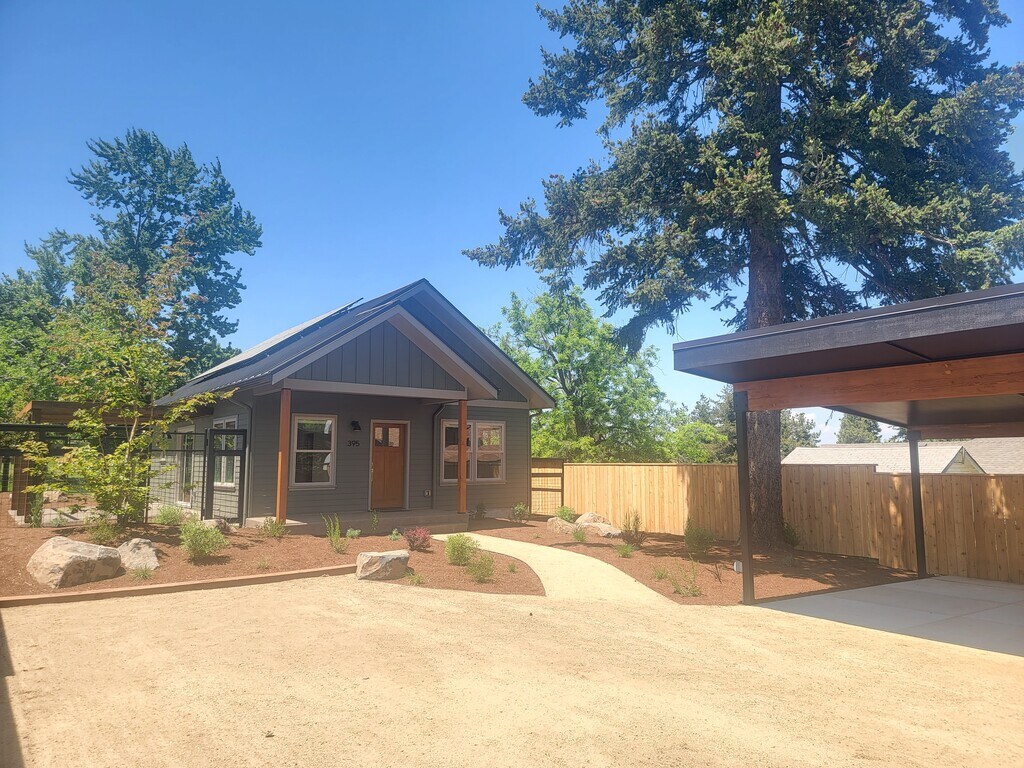 Newer! Very Nice, Small/light and bright-2 bedroom, 2 bathroom house in Ashland. This open and bright floor plan was thoughtfully designed for efficiency with Ductless heating and A/C, high-end stainless steel appliances, including double door refrigerator, dishwasher, gas range and microwave. Primary bedroom has a walk in shower, lighted vanity and tile and hall bath has oversized tub for soaking and lighted vanity. Carport, Extra storage, washer dryer, fenced yard, and patio with Pergola. Across from SOU, close to schools and shopping Utilities included: electricity, water and sewer. Tenants pay gas and garbage. Pet friendly! Landscaping included $45 Application Screening Charge per per person age 18 and over $2300 Rent/1 year lease $2500 Security Deposit