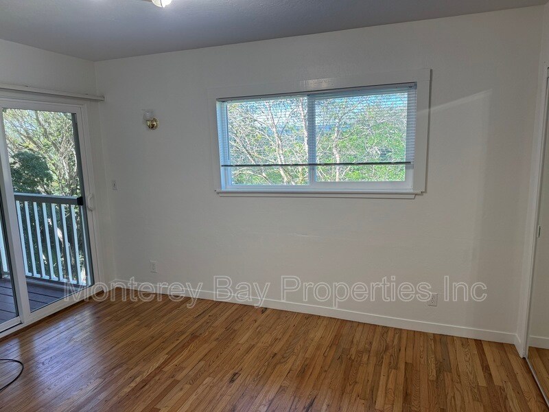 Downstairs 2 bedroom, 1 bathroom duplex unit located in sunny Scotts Valley. Large exterior deck off living room, and primary bedroom that overlooks an arroyo. Enjoy a large living room with hardwood floors and a screen door. Kitchen with wood cabinets, granite counters, tiled backsplash, white appliances, electric range/oven, and refrigerator along with eating area. Primary bedroom with hardwood floors, closet and slider leading to exterior deck. Laundry room with storage cabinets, shelving, and stacked washer/dryer. Bathroom has tiled tub/shower, tiled floors, single sink, wood vanity, new medicine cabinet with mirror. New interior paint, off-street parking for two cars, landlord pays water and garbage. Good commute location, close to Highway 17, Scotts Valley Market, and Starbucks.
