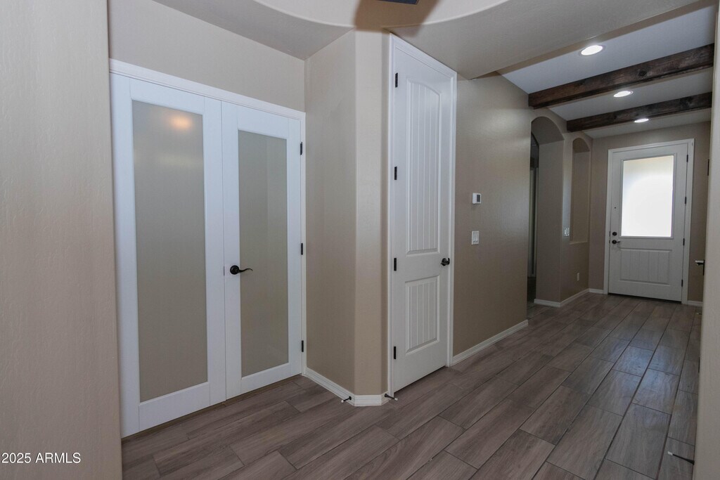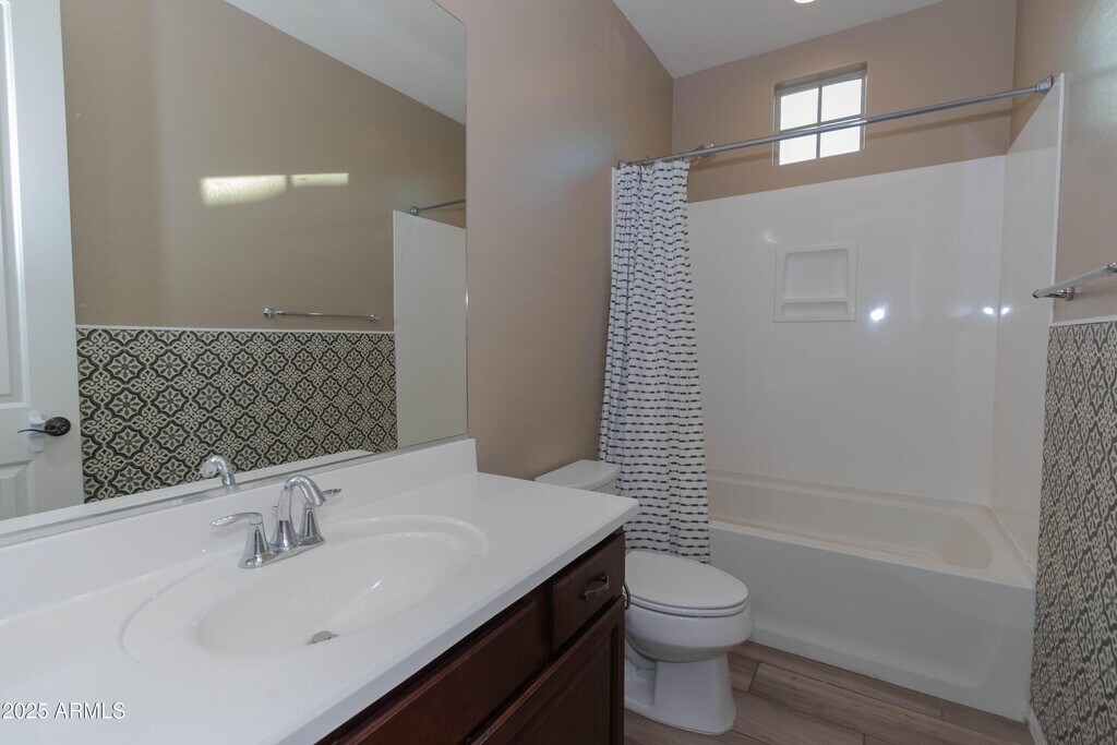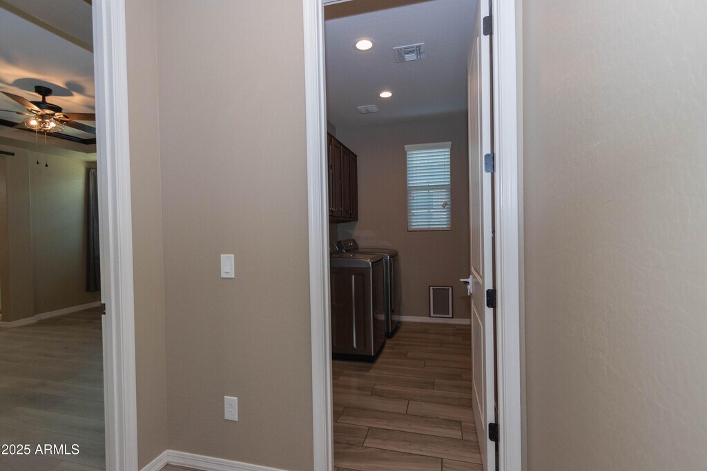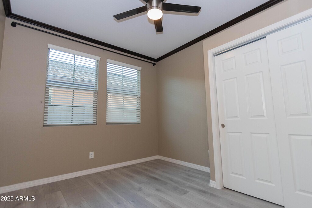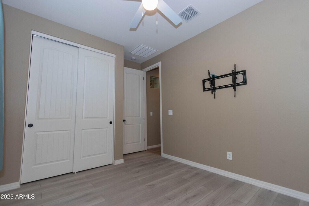 Beautifully upgraded 4-bed,2-bath home in the sought-after Cooley Station community! This modern home features an open floor plan,ceramic wood-look flooring throughout and laminate in the bedrooms,plantation shutters,and a front-entry 2-car garage that offers convenient Lv.2 EV charger,while the low-maintenance backyard features artificial turf and Travertine pavers along both sidesideal for relaxing or entertaining. Cooley Station offers resort-style amenities like a sparkling pool,green spaces,and playgrounds,with easy access to the Loop 202 and Mesa Gateway Airport.