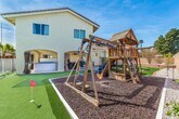 Feast your eyes on this must-see-to-believe home! There is a really nice living room with an chic adjustable TV, and anything else you would need to feel amazed and comfortable. This property features vaulted ceilings, all new windows, custom kitchen cabinets with silverware and cooking utensils, built-in desk and more. Spacious kitchen will delight with ample storage and counter space; breakfast bar. All the bedrooms feature nice spacious beds with linens made on each bed, convenient end tables, and bathrooms that include towels. The outside features desert-landscaped yard features a sparkling pool, trampoline, playset, and mature fruit trees. Neutral colors, a 1 car garage, and fab floor plan! All Utilities Included!! This house is completely furnished so all you have to do is bring a toothbrush and some food and then you can make this your home!!! Call Ben at for a showing Note: Owner will live in a separate section of the house with a seperate entrance