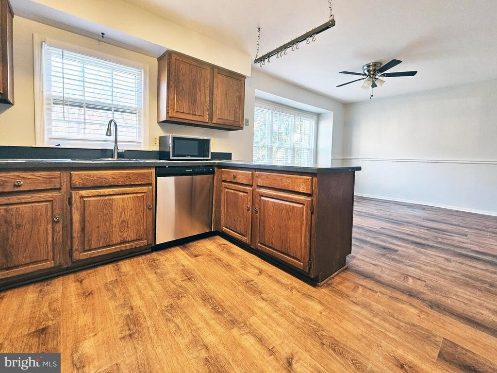 UPDATE!!! The landlord just installed new Luxury Vinyl floor on main floor and upper level, new dish washer. This beautifully maintained 4-bedroom, 3.5-bathroom townhouse. The home features a formal dining room, formal living room, breakfast room. Finished Basement with new luxury vinyl floor is a versatile space perfect for home office, or guest suite, complete with a full bath. Private fenced backyard back to wood with beautiful brick patio offers an ideal for outdoor dining and enjoying the serene surroundings. The home is in the prime location situated in a peaceful neighborhood, yet close to shopping, dining, and major commuting routes, near I-495, near NOVA community college, near Arlington, near DC. There are 2 assigned parking spaces and public parking spaces. Community pool is available upon paid by tenant. There are no sign on the property.