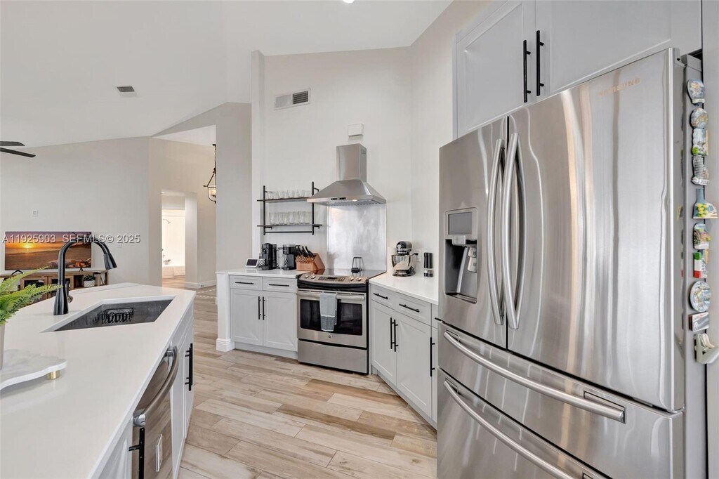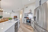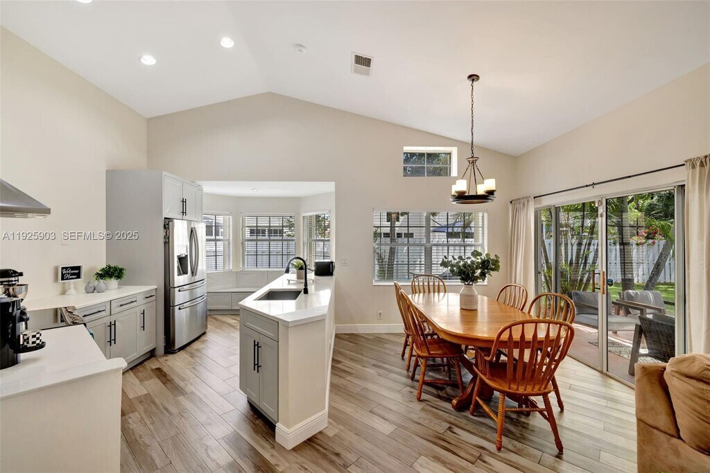Your future home awaits! Welcome to this charming single family home located in the sought-after Bermuda Springs community. Situated on an oversized corner lot, this home features a one-car garage, split floor plan, and soaring volume ceilings. Modern floors and a renovated open concept kitchen designed for both comfort and style. The spacious primary suite includes a walk-in closet and patio access, primary bath offers a tub for a spa-like retreat and double sinks. The private, fully fenced backyard is perfect for relaxing, playing and entertaining. Hurricane accordion shutters throughout. With a community park just steps away and close proximity to top-rated A+ schools, this home offers the ideal blend of privacy, convenience, and family living.
