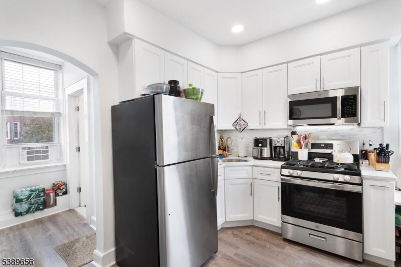 Located in the heart of Caldwell's vibrant downtown, this beautifully updated apartment blends classic character with modern updates. Featuring high ceilings, hardwood floors, and abundant natural light, every room feels open and inviting. The living room is warm and welcoming, framed by large windows and timeless architectural details. The renovated kitchen is a true standout, complete with white shaker cabinetry, quartz countertops, stainless steel appliances, and a subway tile backsplash. A built-in bar area with wine storage and glass-front cabinets adds both function and style, perfect for entertaining or morning coffee. Each bedroom offers generous space and versatility, with soft natural tones, ample light, and thoughtful layouts. The updated bathroom includes modern tilework and a glass-enclosed shower for a clean, fresh finish. Conveniently located just steps from restaurants, caf s, boutiques, and NYC transportation, this apartment offers the best of downtown living in one of Essex County's most desirable communities.