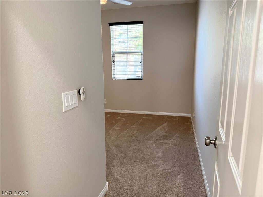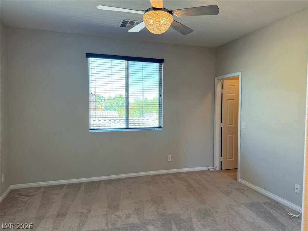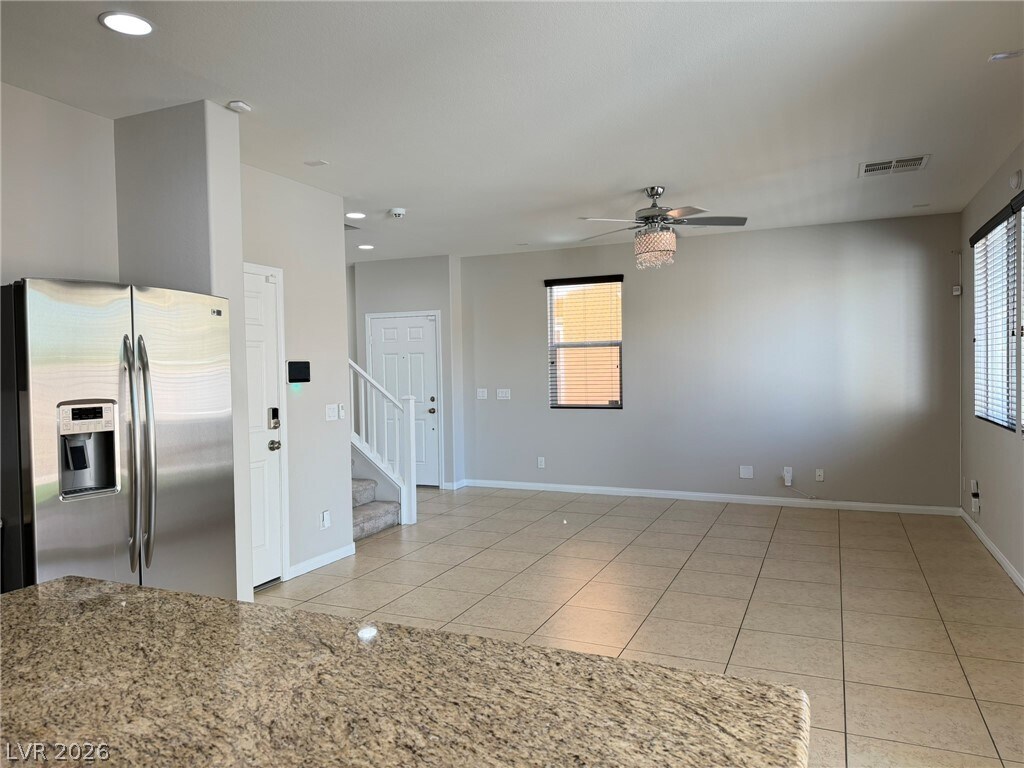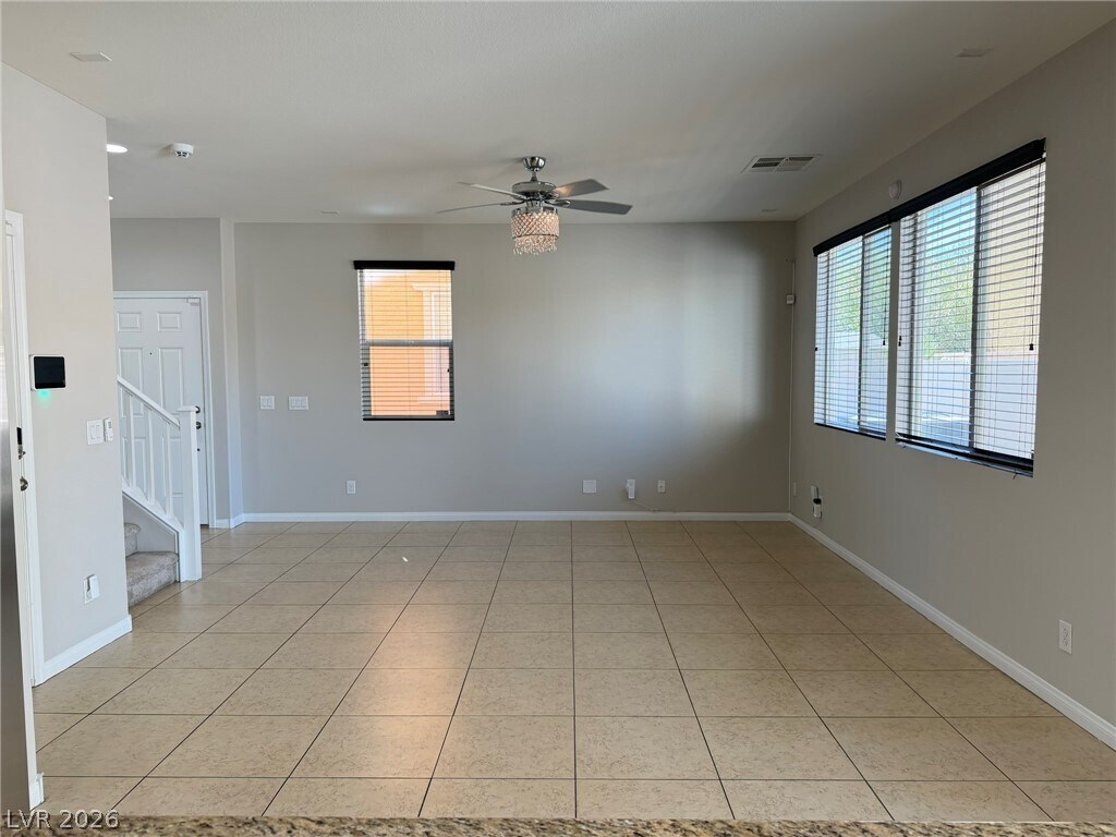 Beautiful two-story townhome in North Las Vegas featuring modern upgrades and thoughtful design throughout! The stylish kitchen boasts all stainless steel appliances, upgraded cabinetry, and gorgeous granite countertops—perfect for cooking and entertaining. Enjoy a covered patio with low-maintenance synthetic grass, ideal for relaxing outdoors. The home offers a convenient downstairs bedroom, while all additional bedrooms and the laundry area (washer and dryer included) are located upstairs. The spacious primary suite features dual sinks and a walk-in closet. Ceiling fans and window blinds are installed throughout for comfort and convenience. Minimal landscaping makes upkeep a breeze. Small pet (cat or dog) will be considered—don’t miss this fantastic opportunity! Property has SOLAR. Landscape included in rent.($2,263 Base Rent + $37 Resident Benefit Package)