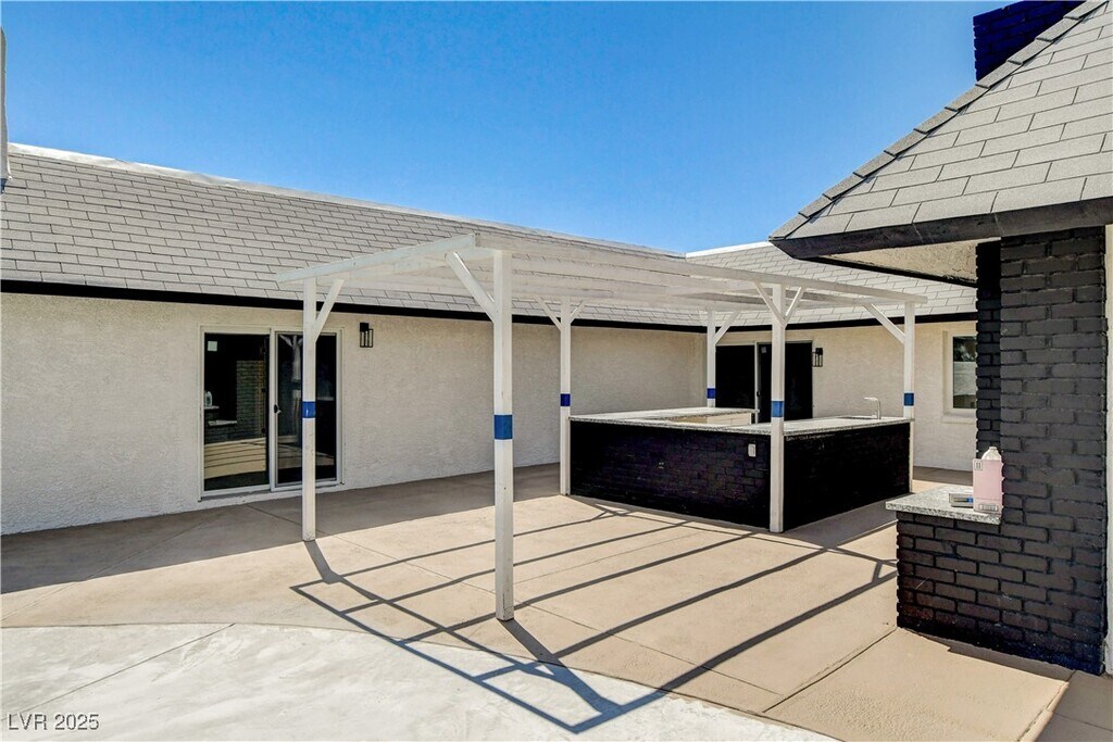 Brian HartsellExperience the charm of classic Vegas living on this exceptional 1.3-acre estate, offering 3,844 sq ft of fully remodeled single-story comfort. The spacious layout features a chef s kitchen with abundant cabinetry and counter space, a flowing living and dining area perfect for entertaining. Step outside to a resort-style backyard with a massive pool, built-in BBQ, and outdoor bar ideal for hosting or relaxing in the sun. The property also boasts a separate 2,904 sq ft garage with three RV bays, six full RV hookups (water, sewer, and electric), and room for up to eight vehicles with heating and cooling. Whether you re looking for a luxury escape or the ultimate entertainment compound, this home has it all!