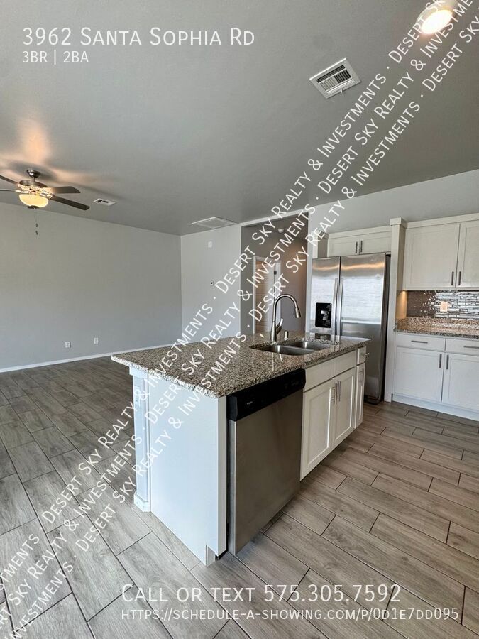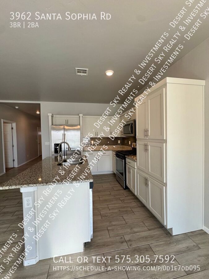 Welcome to this stunning 3 Bedroom 2 Bathroom Home located in the vibrant city of Las Cruces, NM. This home boasts a fully equipped kitchen with sleek granite countertops, and an open floor plan that allows for seamless transitions between spaces. The bedrooms are carpeted for your comfort, while the rest of the house features beautiful tile throughout. The home is equipped with refrigerated air for those hot summer days and a cozy covered patio for outdoor relaxation. The property is situated on a corner lot with low maintenance landscaping, including artificial grass, and a fully fenced backyard for added privacy. The home also features a spacious 2-car garage. The community park and nearby golf course offer plenty of recreational opportunities. The split floorplan design ensures privacy and space for everyone. This home is not just a house, but a lifestyle. Come and experience it for yourself! $30 application fee per adult for all applicants and co-signers. Additional $25/mo per pet. Max 1 dog. No cats allowed No aggressive breeds allowed. At least 1 year old. Must be spayed or neutered. Deposit equivalent of 1 month's rent. No smoking allowed in or on property. Renter's insurance is required. Tenant Administration Fees: 1. Late Fees A late fee of 5% of the monthly rental rate will be assessed if rent is not received within three (3) days after the due date. 2. 3-Day Nonpayment Notice Fee – A $15.00 fee will be charged per occurrence when a 3-Day Notice for Nonpayment is posted due to rent not being received by the end of the lease's grace period. 3. Noncompliance Notice Fee – A $15.00 fee will be charged per occurrence for each notice posted due to lease violations or other noncompliance issues. 4. Lease Holder Changes – Lease holder removal is not permitted during the lease term except under approved circumstances. If permitted, a $50.00 administrative fee will be charged for each lease holder removed after the original lease is signed. A $100.00 administrative fee will be charged for each new tenant added to the lease after the original signing, subject to approval. 5. Inspection Noncompliance Fee – A $100.00 fee will be charged if tenants fail to complete a required inspection through RentCheck, necessitating an in-person inspection by property management. 6. Early Termination Fee – A $300.00 fee will apply if a tenant chooses to terminate the lease early. 7. Unauthorized Pet Fee – A $250.00 fee will be charged for each unauthorized pet (whether visiting or residing on the property). 8. Lease Break or Change of Intent to Move-In – If a tenant breaks the lease or changes their decision about moving in after lease signing, they remain responsible for rent, utilities, and property upkeep until a qualified replacement tenant is secured. A $300.00 early termination fee will also apply in this situation. Please note: All fees are subject to New Mexico Gross Receipts Tax. 2 Car Garage Artificial Grass Carpeted Bedrooms Community Park Corner Lot Covered Patio Fully Equipped Kitchen Fully Fenced Backyard Granite Countertops Low Maintenance Landscaping Near Golf Course Refrigerated Air Split Floorplan Tenant Responsible For All Utilities Tile Throughout