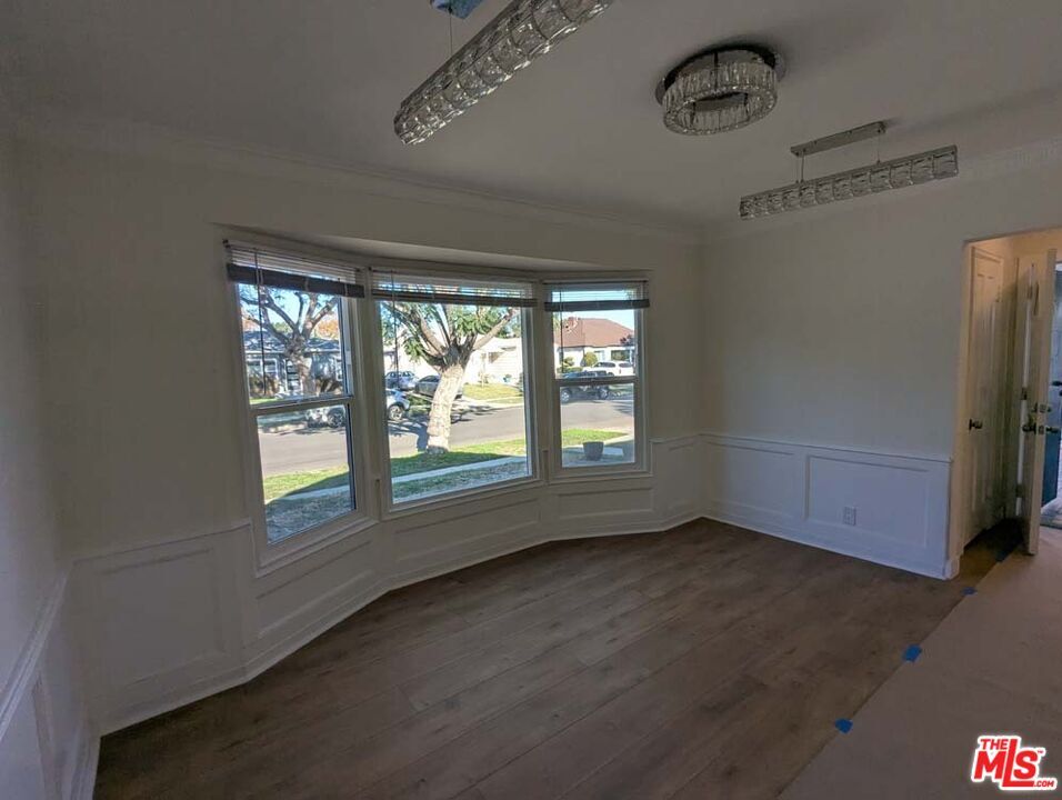 Beautifully rehabbed 2-bedroom 1-bathroom single-story airy home offers a bright and inviting living space with thoughtful updates throughout. Enjoy a brand new kitchen with all new cabinets, new quartz countertops, new stainless steel sink, faucet, garbage disposer, and brand new stainless steel appliances, including gas stove, dishwasher, and microwave. Completely redone bathroom with new floor tiles, bathtub, shower tiles, new vanity, new toilet, and all new fixtures, in addition to all new plumbing, and electrical upgrades offer a worry-less convenience for years to come. New luxury vinyl flooring in the formal dining, big living room, hallway, and both bedrooms, in addition to upgrades fixtures in all rooms, mirrored closest doors in one of the bedrooms, fresh paint throughout, complemented by modern recessed lighting for a clean, contemporary feel. The exterior has also been freshly painted, enhancing the home's curb appeal. Formal dining room features beautiful bay windows and modern crystal chandeliers adding a touch of elegance. Backyard makes it ideal for entertaining or enjoying outdoor activities. Detached 2-car garage with a separate room for storage, provide additional space for storage/work area. Located near Crenshaw Plaza, shopping, dining, local schools, and with easy access to public transportation, this home combines modern updates with everyday practicality in a highly desirable Los Angeles neighborhood. MLS# 25626457