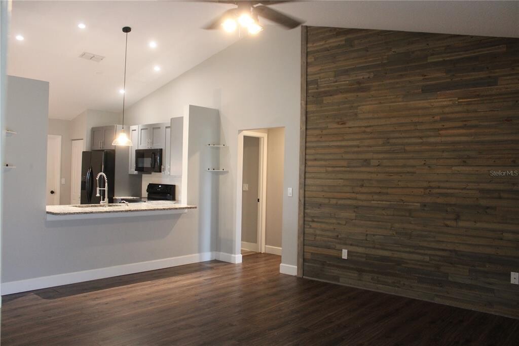 One or more photo(s) has been virtually staged. Welcome to your personal oasis! This beautifully remodeled 3 bed,2 bath home blends modern elegance with laid-back Florida charm. From the moment you step inside,you're greeted by a sense of calm and possibility. To your right,a sunlit flex space awaits—perfect for a chic dining space,den,or sleek office. To your left,the kitchen is a showstopper with granite countertops,soft-close cabinetry,a deep stainless steel sink,and a breakfast bar with seating from the living room side. There is room for a small table under the Edison style pendant light. The living room stuns with soaring ceilings and a rich wood accent wall,and sliders to the enclosed lanai and backyard. The split floor plan offers 2 bedrooms and 1 bathroom on one side,and the primary suite is a retreat of its own on the other side. It features an elegant accent wall,a large walk-in closet,and attached bathroom with beautiful tile details. Newer AC keeps things cool,and the spotless 2-car garage comes complete with washer and dryer. Sorry,no pets. This peaceful community offers a sparkling pool,shuffleboard,and clubhouse with billiards. Located in a non-flood zone,you're just 30 minutes from the beaches,Clearwater,St. Pete,and Tampa. Close to US -19 and I-275 for ease of commuting. Rent includes grounds maintenance,sprinkler watering,internet,trash pickup,water and sewer. MLS# TB8427443