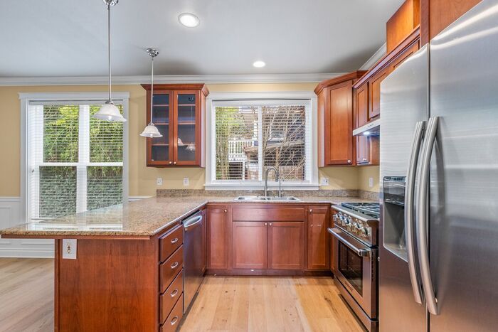 Vaulted ceilings create bright, airy spaces with plenty of room for hosting the crowd. A soft, neutral palette, elegant Wanescoting and gorgeous finishes provide warmth and comfort, while tons of large windows and three balconies open out to Puget Sound. Indulge your inner foodie in the well-appointed Chef’s kitchen complete w/ expansive counters, generous cabinetry, and high-quality stainless-steel appliances. Open spaces ensure you are always front and center, and part of the action! Heading out? With great dining and entertainment options close by, there are myriads of choices for a little extra excitement! As your day winds down, head upstairs to your sumptuous Primary suite with West facing private balcony, 5-point spa bathroom, walk-in closet and gas fireplace. A rare 2nd fully appointed vaulted suite with its own private custom tile bathroom bedroom rounds out the top floor. A 3rd, and even rarer, suite with its own full bathroom on the ground floor provides a peaceful escape. Located on a quiet street tucked one block in from Beach Drive, with short walks to Alki Beach, the Lighthouse and Kee Kwa Mooks Park with all their stunning sunsets. Walk to a myriad of restaurants, shops and beach activities along with a water taxi for direct access to downtown. Easy commute to Seattle and Freeways. This tranquil Pacific Northwest home is a Must See to Appreciate! Don’t miss your opportunity to make this sweet gem your new nest. FEATURES: • 3 full suite bedrooms, 3 private ensuite full baths and a 1/2 bath in 2140 sq ft of fabulous PNW style! • 3 private balconies • AIR CONDITIONING in ALL ROOMS • Vaulted ceilings for airy comfort • Large windows, French doors, and skylight for plenty of natural light • Generous recessed lighting for year-round brightness • Warm wood floors, custom tile, and plush carpet flooring throughout • Well-appointed Chef’s Kitchen w/ plenty of cabinets for great storage • Pro style stainless-steel appliances incl. gas fueled high performance American Range • Granite slab counters and convenient breakfast bar • Formal dining area off kitchen • Fresh, airy living space w/ cozy gas fireplace • Large balcony with French doors off living area • Guest powder room • Spacious 3rd floor primary suite w/ walk-in closet, gas fireplace, private West facing balcony • 5-point primary spa bath w/ oversized walk-in shower, and separate soaking tub • Rare 2nd vaulted bedroom suite with private full bathroom on same floor • Even rarer 3rd bedroom suite with private full bathroom on entry level • Laundry closet w/ full-size stacking washer/dryer • Fully fenced yard year-round maintenance • Rare 2-car attached garage Pets allowed on a case-by-case basis, subject to interview, owner approval and Pet Screen. First month and security deposit. 12-month lease. Terms are renewable and negotiable. All application fees are non-refundable. Please contact Dante / . ----------------------------------------------- Dwellings doesn't advertise on Craigslist. If your contact is NOT a Dwellings team member, it is a scam. Dwellings works for the owner exclusively. Under NO circumstances will the owner be communicating with interested parties directly, nor working with another independent contractor. If in doubt, ask to see a business card. NEVER hand the key to another person. Put the key back in the box after your visit and ensure it is securely locked. Visit our website here: for Dwellings team photos and actual property listings. SHOULD YOU ENCOUNTER ANYONE OTHER THAN A DWELLINGS TEAM MEMBER CLAIMING TO REPRESENT THE PROPERTY, PLEASE CALL 911 IMMEDIATELY. We are pledged to the letter and spirit of U.S. policy for the achievement of equal housing opportunity throughout the Nation. We encourage and support an affirmative advertising and marketing program in which there are no barriers to obtaining housing because of race, color, religion, sex, handicap, familial status, or national origin. Contact us to schedule a showing.