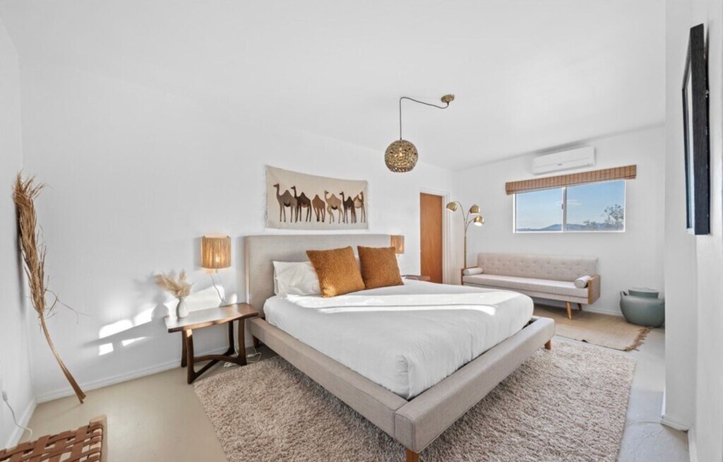 The perfect blend of style, comfort, and seclusion in this professionally designed and fully renovated desert retreat. Set on the western edge of Wonder Valley, this 3-bedroom, 1-bathroom home offers over 1,300 square feet of thoughtfully curated living space, ideal for those seeking both tranquility and accessibility just 7 minutes from downtown 29 Palms and 12 minutes to the entrance of Joshua Tree National Park. Inside, concrete floors and an open floor plan create a spacious, contemporary ambiance. The home features two inviting sitting rooms, a dedicated dining area, and multiple outdoor spaces designed to make the most of the expansive Mojave landscape. Two of the bedrooms offer direct access to a private patio perfect for morning coffee or quiet evenings under the stars. Enjoy breathtaking panoramic views that stretch from Joshua Tree National Park to snow-capped Mt. San Gorgonio and the dramatic Sheephole Wilderness. Whether you're soaking in the bathtub with a stunning desert vista, cozying up by the wood-burning fireplace, or lounging by the above-ground pool, this home brings modern desert living to life. Additional amenities include a hot tub for evening relaxation, outdoor lounging and dining areas for al fresco entertaining, and a Level 2 EV charger for added convenience. This is more than just a rental it's a serene escape designed to inspire and recharge. $40 Application Fee. Income 2.5x Rent. Min 625 credit score. Proof of employment required (2 months of pay stubs, bank account). Schedule viewing by Text only or visit www.peakmanagement.co/vacancies. Peak Management does not and shall not discriminate on the basis of race, color, religion (creed), gender, gender expression, age, national origin (ancestry), disability, marital status, sexual orientation, or military status, in any of its activities or operations. PLEASE BE AWARE OF RENTAL SCAMS: We urge you to be vigilant in researching the legitimacy of any potential rental listings and perform all appropriate due diligence. All deposits, rents and rental agreements should only be executed at Peak Management, 50 S De Lacey Ave, Ste. 210, Pasadena, CA 91105. If you are being asked to meet someone with cash, or if you are being asked to send money via Western Union, Moneygram, or Prepaid Visa card these are possible signs of rental listing scams used to defraud users.