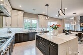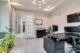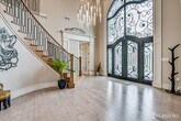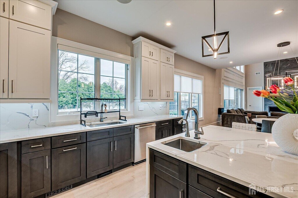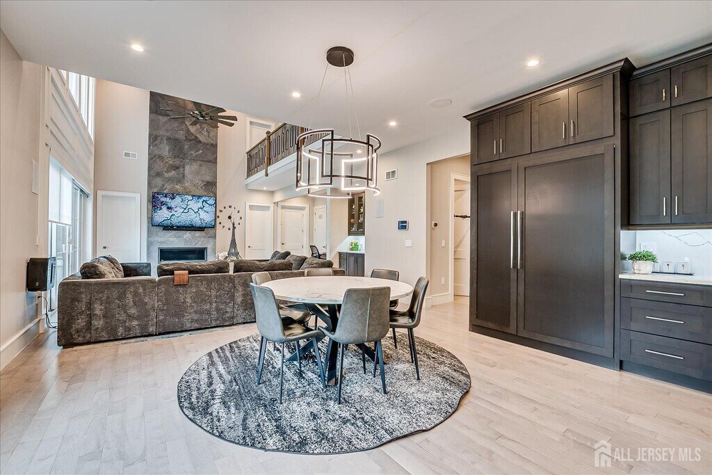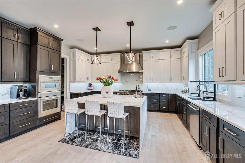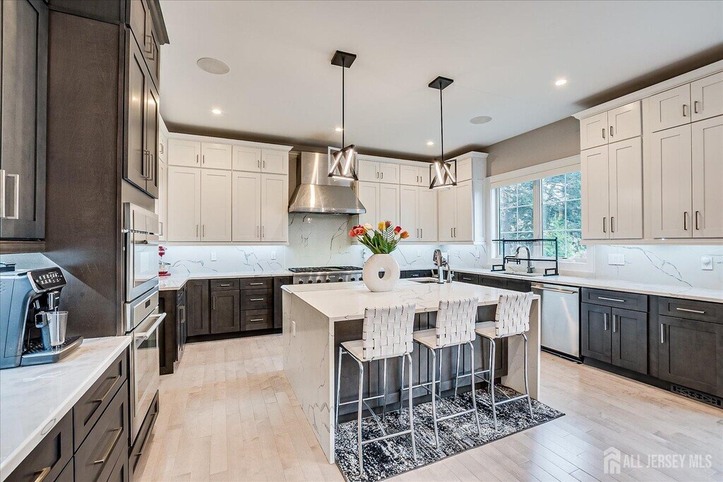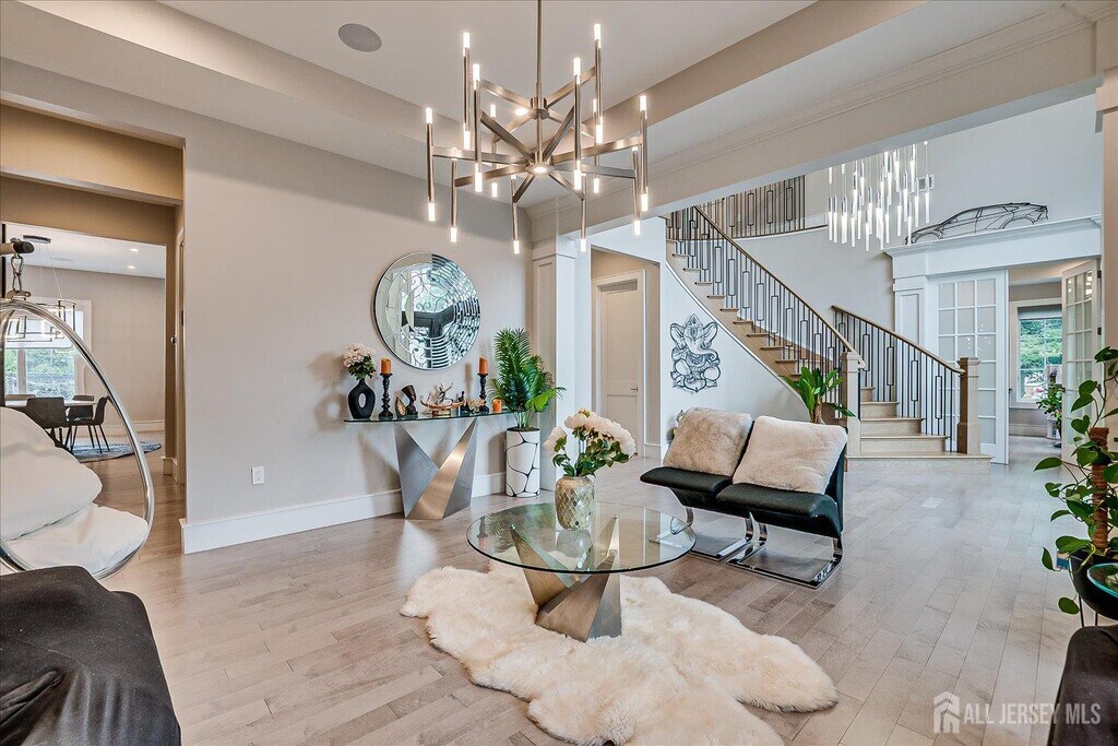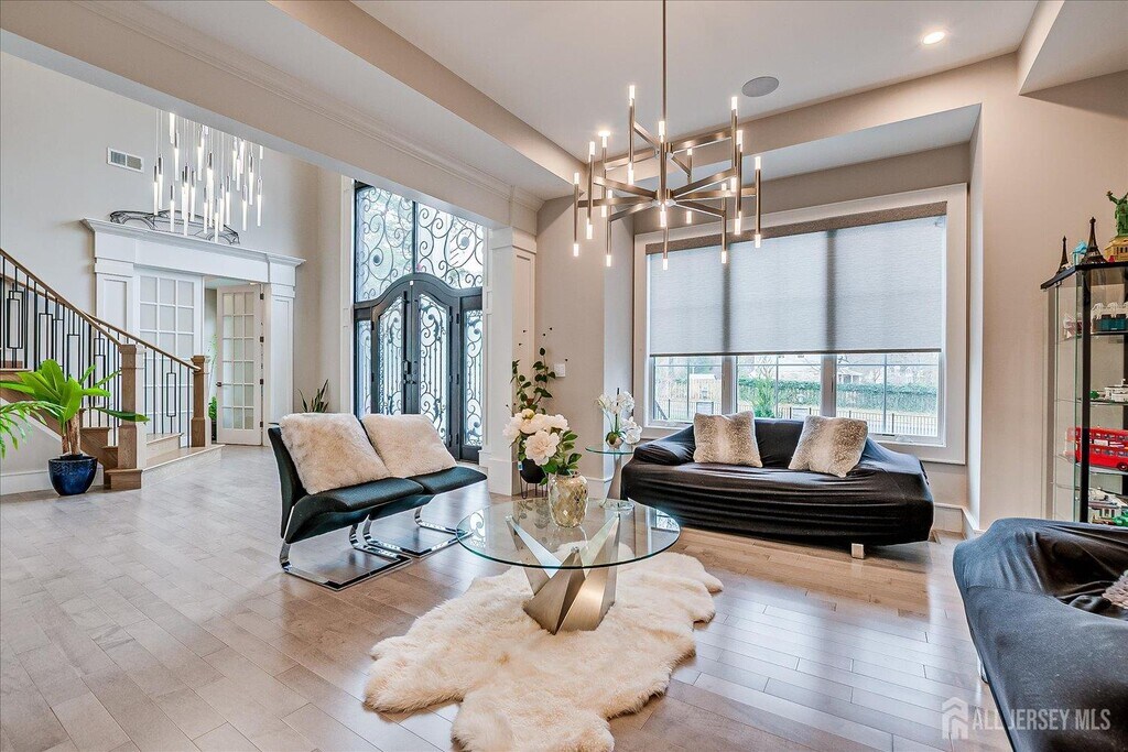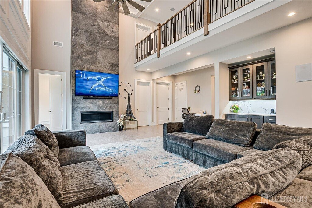 Welcome to this stunning South-facing luxury home,built in 2022 and located in one of Edison's most desirable neighborhoods. With approximately 6,000 sq ft of refined living space,this property offers exceptional comfort,style,and modern convenience. The exterior features a circular paver driveway,a fully fenced yard,an attached 3-car garage with automatic openers,and an electric car charging station. Step inside and you're greeted by a grand two-story foyer,where hardwood floors flow throughout the main living areas. To the left is a formal living room,while a beautiful winding staircase gracefully anchors the space. To the right,a bright office with French doors is perfect for working from home. A convenient half bath completes the front area of the first floor. Moving further inside,the home opens into a breathtaking two-story-high family room featuring a gas fireplace,elegant coffered ceilings,and built-in speakers. This space seamlessly connects to the expansive open-concept kitchen and dining area,creating the ideal layout for everyday living and entertaining. The kitchen is equipped with Thermador luxury appliances,quartz countertops,a large center island with pendant lighting,and two stylish bar areas perfect for hosting. A dedicated Pooja room (which can also be used as an additional office or quiet space) adds versatility. Completing the first floor is a spacious guest bedroom with a walk-in closet and a full bathroom,offering comfort and privacy for extended family or visitors. The mudroom off the garage provides extra storage and convenience. On the second level,the primary suite is a true retreat. It offers a massive custom walk-in closet,a private balcony,and a spa-like bathroom with marble flooring and wall tile,a custom steam shower,dual vanity,and a separate toilet room. Bedroom 3 features a walk-in closet and its own full bathroom with a custom shower. Bedrooms 4 and 5 each include generous closet space and share a beautifully designed Jack-and-Jill style bathroom. The second-floor laundry room makes daily routines effortless and completes this level. The basement extends the home's living space with 9 ft ceilings,soft carpeting,a dedicated theater area,and a walkout to the yard. Outside,enjoy a fully fenced yard with a hot tub and a storage shed,offering privacy and relaxation. Additional premium features include: smart thermostat,remote-controlled shades throughout,water softener,tankless water heaters,4-zone heating and cooling,whole-house generator,solar panels,sprinkler system,alarm system,and even a private elevator that services all three levels. This exceptional home truly has it all:luxury,space,and every upgrade you could imagine. A rare rental opportunity in Edison.