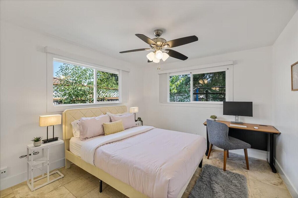 Feel at home in this newly remodeled 3-bedroom, 2-bathroom home in Los Gatos, offering 1450 sqft of living space. Remodeled in July 2024, this home features brand new furniture and appliances. The fully equipped kitchen includes a 4-burner gas range, oven, microwave, dishwasher, coffee machine, toaster oven, and an on-tap alkaline water filter system. Enjoy entertainment with a smart 55" TV with Roku and a Samsung sound system. The spacious, fully fenced backyard features new furniture, abundant lighting, and a fire pit. There is also a fully furnished patio with an outdoor dining table and a foosball multi-games table. For your convenience, there is a free on-site washer and dryer with laundry detergent and a new HVAC system for year-round comfort. One off-street parking spot is available, along with ample street parking in front of the property. Access to an outdoor gym with a power cage/squat rack is available upon request. This is a pet-friendly home and baby essentials are available upon request (high chair, crib, toys etc). This home is centrally located, just a 2-minute walk to Safeway, Starbucks, and restaurants in Downing Center, Los Gatos, and 3 minutes to Good Samaritan Hospital. Downtown Los Gatos is 5 minutes away, Vasona Park is 6 minutes away, San Jose Airport is 15 minutes away, and Stanford is 25 minutes away. Enjoy convenient access to all major highways in Silicon Valley and proximity to major tech companies like Apple and Netflix. No parties or smoking are allowed inside the house, or any other violation of house rules. A $500 fee will be strictly enforced if any rules are broken. This home is the larger unit of a duplex, with a private entrance, private backyard and patio space, and complete privacy. There are security cameras around the exterior of the properties to monitor any safety concerns including one ring doorbell, at the driveway, over the patio and the backyard. A dedicated home office set-up with a 24-inch monitor, keyboard, and mouse is available upon request. [SI]