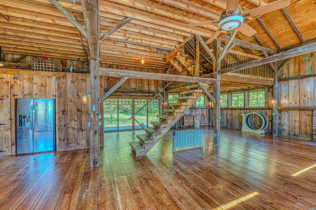 Experience rustic charm and modern comfort in this unique barn conversion set on a peaceful estate in Lisbon, NH. This two-bedroom, 1.75-bath rental showcases soaring open-beam ceilings, wide-plank wood floors, and expansive windows that fill the space with natural light and frame serene country views. The open-concept living area features a spacious kitchen with stainless steel appliances, farmhouse sink, and warm wood cabinetry, seamlessly blending character with functionality. A woodstove and exposed brick hearth create a cozy centerpiece, while sliding glass doors open to a large wraparound deck perfect for entertaining or simply soaking in the quiet beauty of the North Country. Upstairs, rustic woodwork continues into comfortable bedrooms with vaulted ceilings and charming details. Surrounded by open fields and woodland, yet just minutes to Littleton and area amenities, this one of a kind home offers both tranquility and convenience. MLS# 5063370