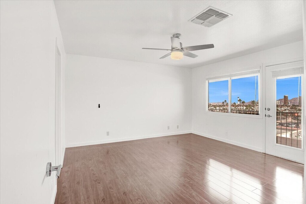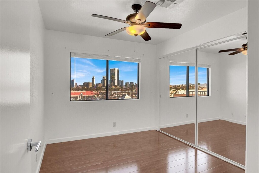 Remarks 3 Bedroom/2.5 bath located in a gated community. Panoramic Strip & Mtn Views from both levels & from the private patio of this two-story townhouse! The view is great in the day, night, and in-between. Located in Flamingo Heights gated community, WEST of the strip,close to shops, restaurants, casinos. City bus stops just outside the main gate. The complex is Beautifully landscaped with mature trees & desert shrubs. Only minutes from the fabulous LV Strip. Complex has 2 pools/spas and a tennis court. Updated w/ Wood Flooring in Living areas, Tile in Kitchen and Baths; granite tops throughout; and stainless kitchen appliances. Full size washer/dryer.TWO Updated A/C units for higher efficiency and lower electric bills. Primary Bedroom can easily accommodates a King Bedroom Set. The PRIVATE back yard has the full view plus a deck and a small yard area for plantings. NOTE: Furnishings are for staging purposes only. MAX PERIODIC RENT:$1995.00(BASE RENT $1995.00)