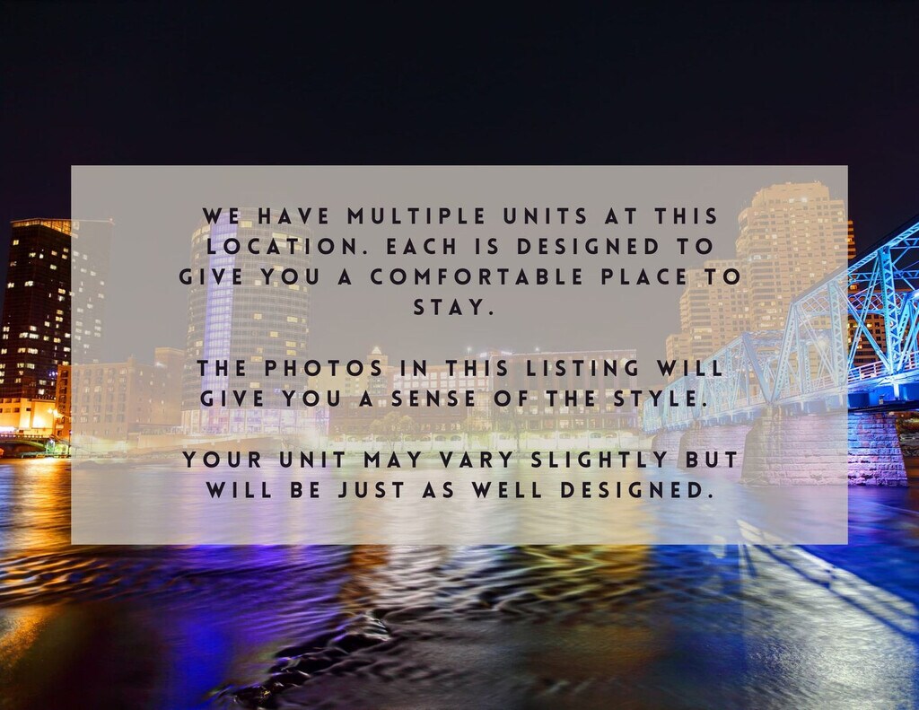 Feel at home in this trendy and modern 2-bedroom condo in Wyoming, Michigan, a stone's throw away from downtown Grand Rapids. This condo offers a perfect fusion of contemporary style and playful vibes. It features a fully stocked kitchen, a dining area that seats six comfortably, and a living room with a Smart TV. Enjoy the convenience of in-unit laundry and TVs in every room. Parking is available for two vehicles, one in the driveway and one in the garage. This is a pet-friendly apartment with applicable fees. Wyoming, Michigan, is a welcoming and family-friendly suburb located southwest of Grand Rapids. The neighborhood offers a mix of residential areas, schools, parks, and local businesses, providing a comfortable suburban lifestyle with easy access to urban amenities in the nearby city. Explore the attractions of Grand Rapids, including the vast recreational space of Millennium Park, the Frederik Meijer Gardens & Sculpture Park, and the Rivertown Crossings shopping center. Trash bin needs to be put to the end of the driveway before Thursday morning; a $50 fee will apply if missed. Smoking is permitted outside, please dispose of trash properly. Quiet hours are from 10pm to 6am. No loud music or parties; do not disturb the neighbors. Do not tamper with or disable the security camera or smart home devices. Keep the number of guests in your reservation accurate and don't violate the occupancy limits. Follow check-in/check-out times and procedures. Please do not rearrange furniture. There is no street parking allowed at any time for any reason; vehicles parked on the street are subject to immediate towing at the vehicle owner’s expense. Maintenance and inspections may be required during your stay, and we cannot guarantee a specific timeframe or reschedule these visits. Additional fees apply if there is excessive pet hair and pet waste around the property. Pets are not allowed on furniture and dogs must be on a leash when taken outside, and guests must pick up after them throughout their stay. Includes a desk in the second bedroom. [SI]