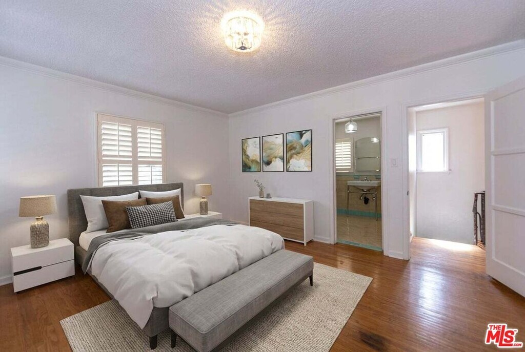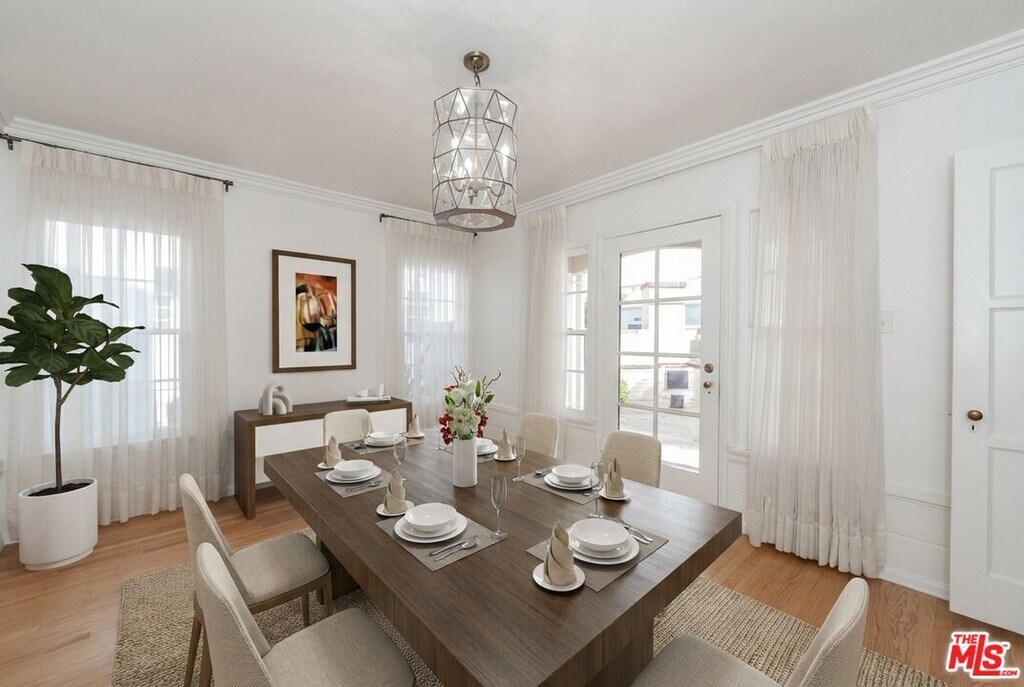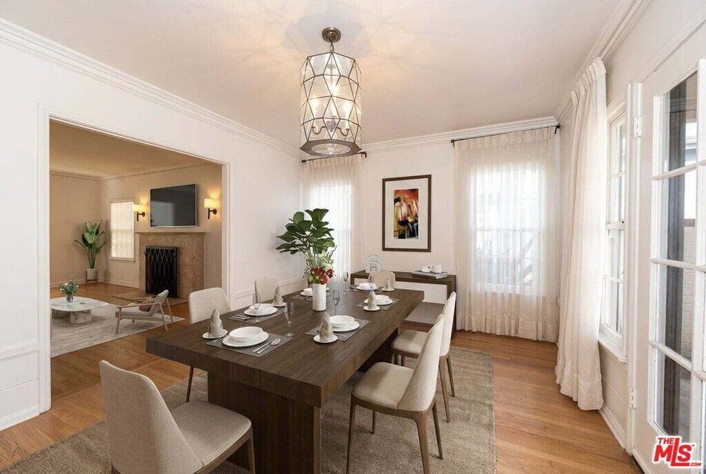 Welcome to this beautiful 2-story home nestled in the desirable neighborhood of Leimert Park. This 2,151 square foot home boasts 3 bedrooms, 3 bathrooms, and an office/library complete with built-in bookshelves, perfect for those working or studying from home. This home offers a perfect blend of charm and comfort. The step-down living room is spacious and features a stone fireplace and elegant crown moldings, creating a warm and inviting atmosphere. Step up to the formal dining room, adorned with a glass paned door, providing a seamless transition to the backyard patio, creating an ideal space for entertaining guests. The kitchen boasts a perfect blend of style and functionality. The white upper cabinets and dark gray lower cabinets create a modern and sleek look, complemented by the stainless-steel sink and appliances. With a double oven and recessed lights, this kitchen is perfect for hosting dinner parties or simply preparing a delicious meal. Off of the kitchen is a separate, quaint breakfast nook with shutters and insets providing a perfect spot for enjoying morning coffee or casual meals. Upstairs, you'll find all the bedrooms, ensuring privacy and tranquility. The primary bedroom's en-suite is open with a separate tub and shower. One of the bedrooms offers access to a rooftop deck, where you can relax and bask in the sun. This home features beautiful hardwood floors throughout, adding a touch of elegance to every room. The backyard patio is the complete with a brick pit, and is an ideal space for enjoying outdoor relaxation. The detached 2-car garage provides ample parking and additional storage. The washer and dryer are housed in a separate room off the garage. Situated on a tree-lined street, this home is conveniently located close to Culver City, LAX, Beverly Hills & USC. Metro rail transportation, offers easy access to Downtown Los Angeles, Santa Monica and to LAX. Don't miss the opportunity to live in this Leimert Park gem. Come be the newest neighbor! (Some photos have been virtually staged) MLS# 26656981