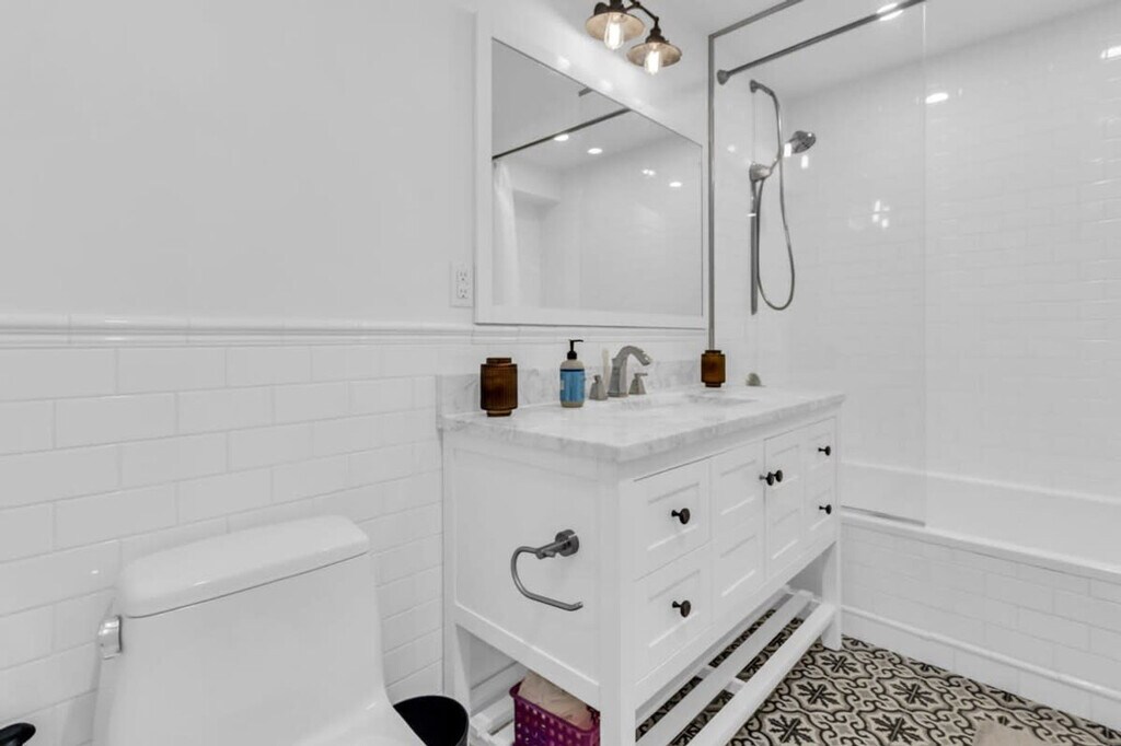 Step into urban luxury with this 2-bedroom, 1-bathroom loft boasting soaring 14 ft ceilings. Enjoy ample natural light, elegant wood flooring, and a chef's kitchen in this 950 sq. ft. space in Carroll Gardens. Step into this urban abode and revel in its spaciousness under soaring 14 ft ceilings. Bask in the abundance of natural light streaming through large windows in this sleek apartment. With elegant wood flooring, the convenience of a washer and dryer, and the functionality of a chef's kitchen boasting granite countertops, every detail is meticulously crafted for modern living. Indulge in the luxury of a generous bathroom complete with a soaking tub. This refined space seamlessly combines industrial charm with sophisticated accents, enhanced by a soothing neutral color scheme. Carroll Gardens, a charming neighborhood in Brooklyn, offers tree-lined streets, historic brownstones, and a vibrant community atmosphere. Known for its trendy boutiques, cozy cafes, and diverse dining options, it's the perfect blend of residential tranquility and urban energy. With beautiful parks and easy access to transportation, Carroll Gardens embodies the best of Brooklyn living. [SI]