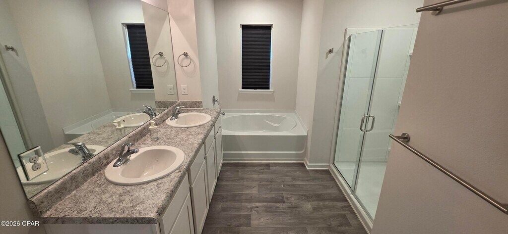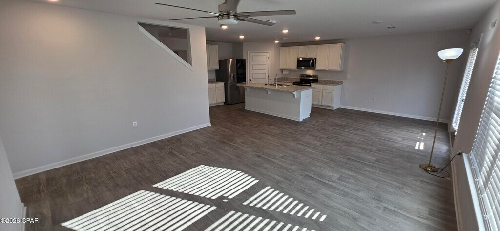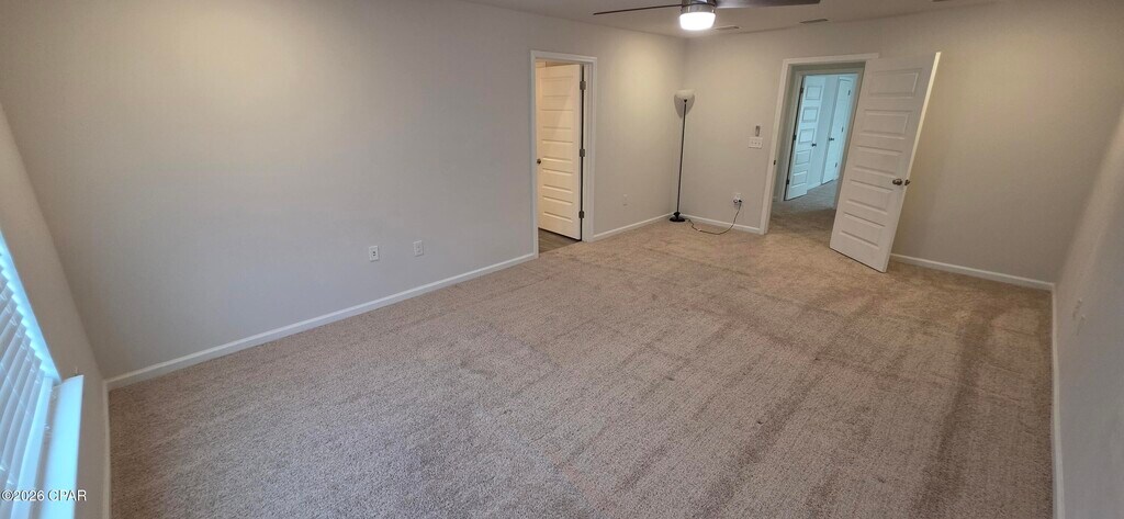Welcome to Brighton Oaks! This home offers a spacious two-story layout with 5 bedrooms, 3 bathrooms, and a 2-car garage with an upstairs loft. Inside, you'll find durable vinyl flooring throughout the main living areas, with comfortable carpet in the bedrooms, stairs, and upstairs hallway. The kitchen and bathrooms feature laminate countertops paired with sleek nickel hardware for a clean, modern look. A full Whirlpool stainless steel appliance package is included, featuring a free-standing electric range, microwave, and dishwasher.The main level includes a guest bedroom and full bath, while the remaining bedrooms are located upstairs for added privacy. The primary suite offers a generously sized bathroom complete with a walk-in closet, dual vanities, a separate shower, and a large soaking tub.at his great location, you'll have easy access to Zollie Young Park, Zollie Young Dog Park, and the Lynn Haven Sports Complex as well as the new Publix and Starbucks complex.Owner will pay for lawn care and electricity not to exceed $200/mo.