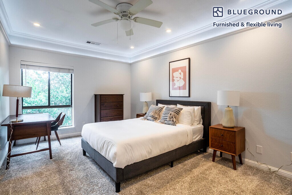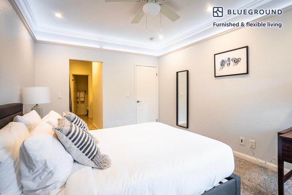 Discover the best of Newark, with this two bedroom apartment in Newark. It’ll be easy to simply show up and start living in this furnished apartment with its fully equipped kitchen, living room, and our dedicated, on-the-ground support. (ID #SFO1606) The advertised rate of $4,070/month is the lowest available price, based on a 2 month(s) and 7 day(s) stay with a move-in date of December 5, 2028. If you’re looking for a 1-year stay, the rate is $4,320/month. Rates vary depending on the duration of stay, season, and other parameters. For exact pricing and additional pricing components, please visit our website and enter your desired move-in and move-out dates. The rate is applicable when billed upfront; it can be higher if billed in multiple payments. Brokers are welcome to reach out. Were you looking for an unfurnished lease? Try Blueground instead and upgrade from unfurnished to furnished living: - Furnished at rates comparable to unfurnished - No setup or furniture costs - save thousands - Move-in ready - save time, just bring your suitcase Designed with you in mind As with any Blueground apartment, you’ll find a thoughtfully designed space complete with beautiful furniture and a fully equipped kitchen in this two bedroom property. And, thanks to our superior quality mattresses, luxury linens, and towels, you can relax knowing you’ll always feel comfortably at home. When you’re ready for some fun, you can take in the Newark vibes or bring the entertainment to you with the premium wireless speaker or smart TV. This apartment also offers in-apartment laundry. Sleeping arrangements Queen Bed, 63in/160cm Queen Bed, 63in/160cm Amenities Building amenities unique to this two bedroom apartment include an on-site: - Dryer - Washing machine - Parking - Pets allowed Arrival and ongoing support The entire apartment is yours to enjoy! Throughout your stay, you’ll have access to our Client Experience team through the Blueground App. You can schedule additional cleanings, submit maintenance requests, and view our neighborhood recommendations with just a few taps. We’ll share all details upon confirmation of your stay. Ideally Located This furnished home is located in Newark, a welcoming residential area in the East Bay region. The NewPark Mall serves as this area’s hub for shopping and dining, giving residents a variety of stores and eateries to choose from. For nature enthusiasts, you’ll be close to the Don Edwards San Francisco Bay National Wildlife Refuge, where you can view coastal birds, plants, and animals. Newark also boasts plenty of playgrounds and picnic areas, making it an appealing destination for families as well. Plus, it’s close to Silicon Valley and the larger Bay Area, so you can experience suburban solitude while still having access to numerous urban amenities. Other things to note This Blueground apartment has flexible lease options, allowing you to book it for one month, a year, or more. Pets are welcome, though weight limits and breed restrictions apply and may incur fees. Parking is offered based on availability and is subject to a fee. Please keep in mind that this is a walk up building. We take great pride in ensuring every photo displayed is shot in our own units with our actual furnishings. That said, we regularly refresh our decor and furniture arrangement, which may differ from what’s pictured. Also note - The apartment's fireplace is for decorative purposes only [SI]